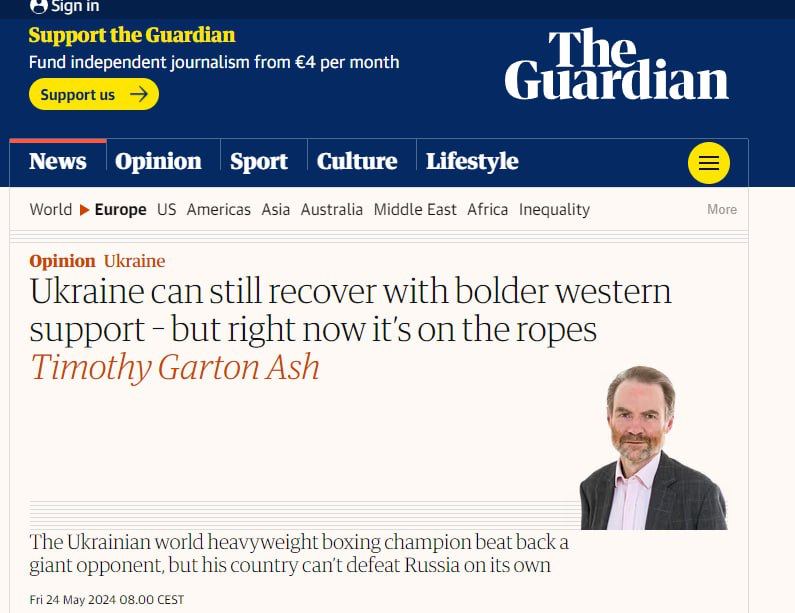 ✖️ Также газета пишет, что на Украине сейчас надеются не на победу, а на выживание государства. Киев «никогда не простит американский Конгресс за промедление в одобрении помощи».