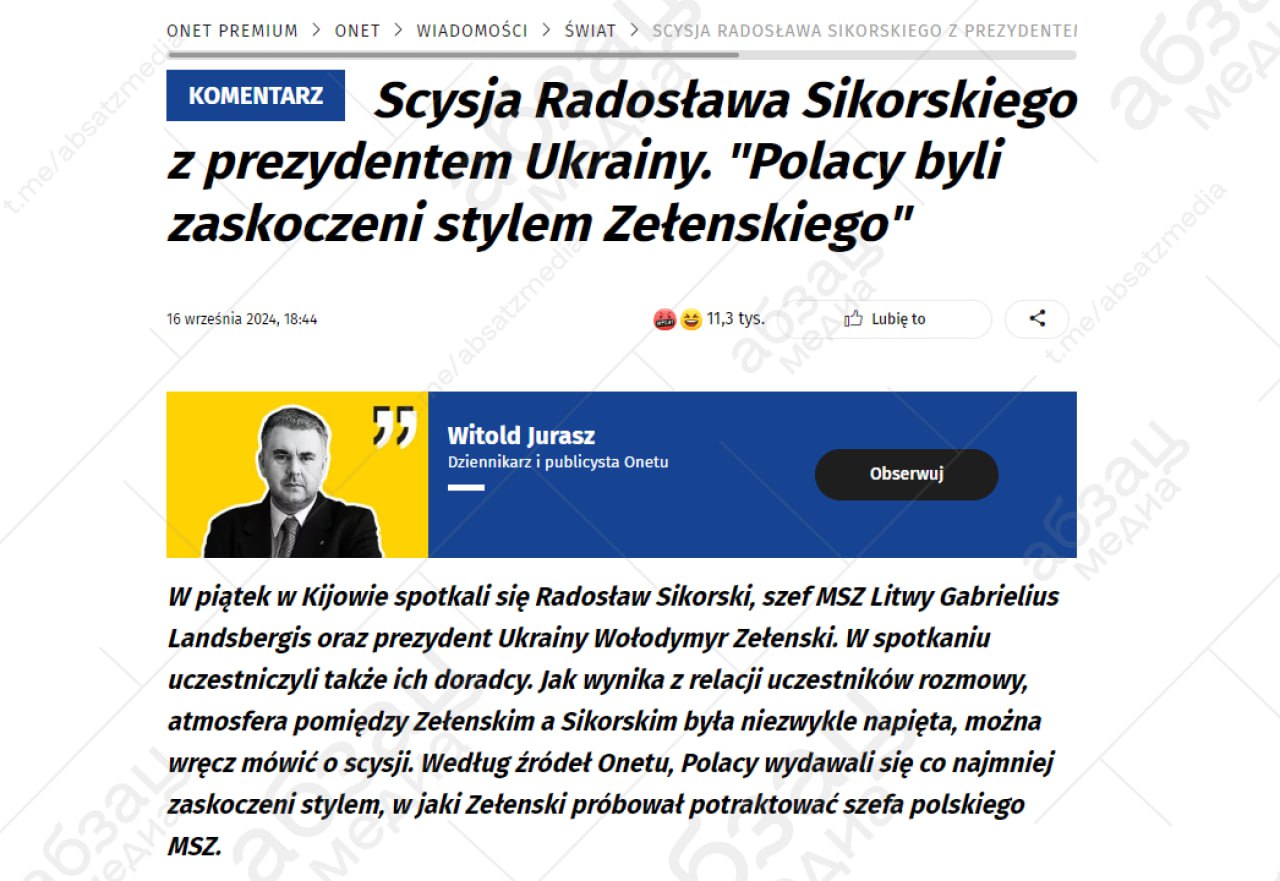 «Атмосфера на встрече в Киеве была «напряжённой». Поляки были «крайне удивлены» тоном, в котором Зеленский пытался разговаривать с главой польской делегации».