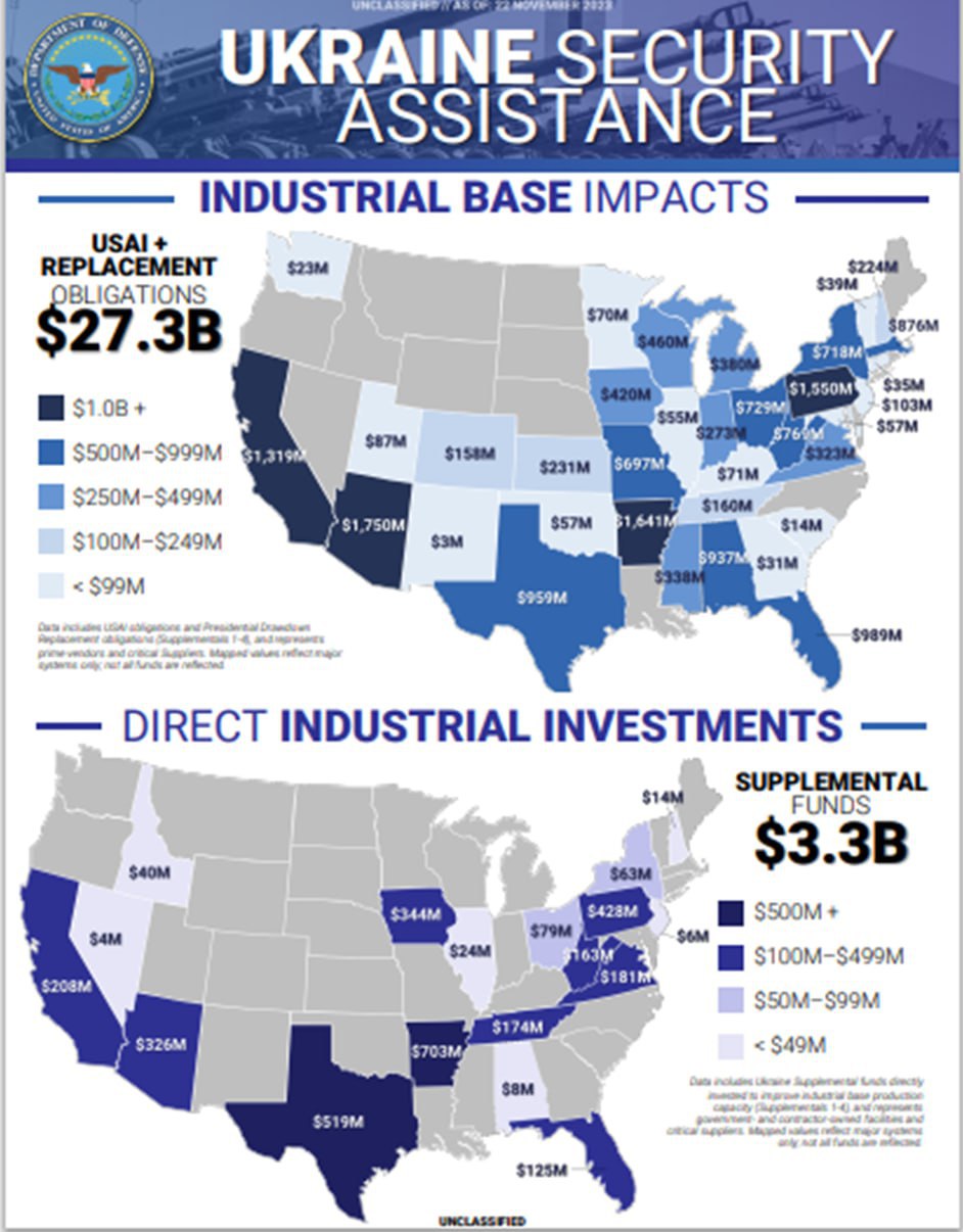 ▪️ Правда, максимальный потолок PDA тоже устанавливается Конгрессом. По состоянию на 29 сентября 2023 года, как отмечал финансовый контролёр Пентагона Майкл Маккорд, у министерства осталось всего $1,6 млрд для пополнения военных запасов, поступающих на Украину, и $5,4 млрд — на поставки Киеву по механизму PDA.