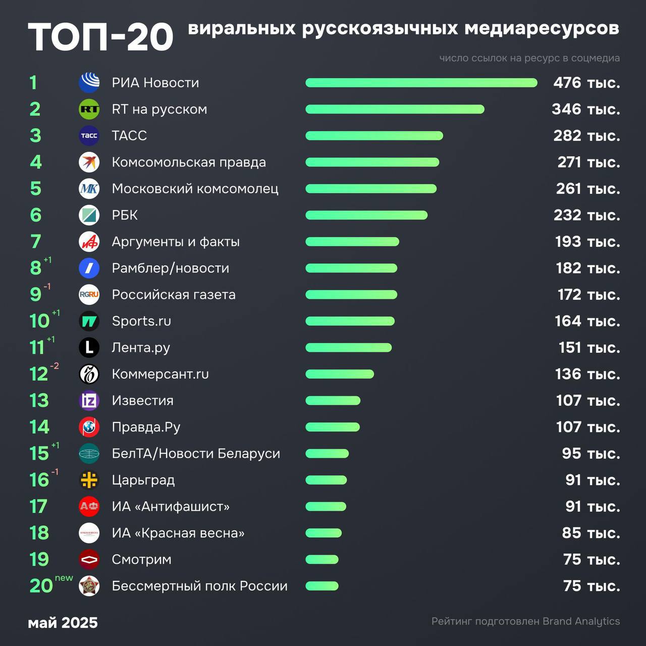 РИА Новости и RT, как обычно, в топе рейтинга интернет-ресурсов, которые формируют инфополе.