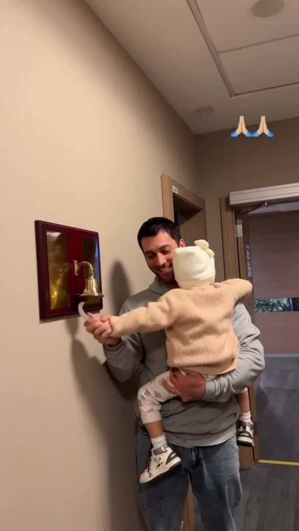 Сестра Ханде Гамзе опубликовала в социальных сетях видео, как ее супруг держит на руках дочь и вместе с ней бьет в колокол. В онкологических центрах есть традиция, согласно которой пациенты оповещают всех о своем выздоровлении, и этот звон может воодушевить тех, кто еще страдает от болезни.