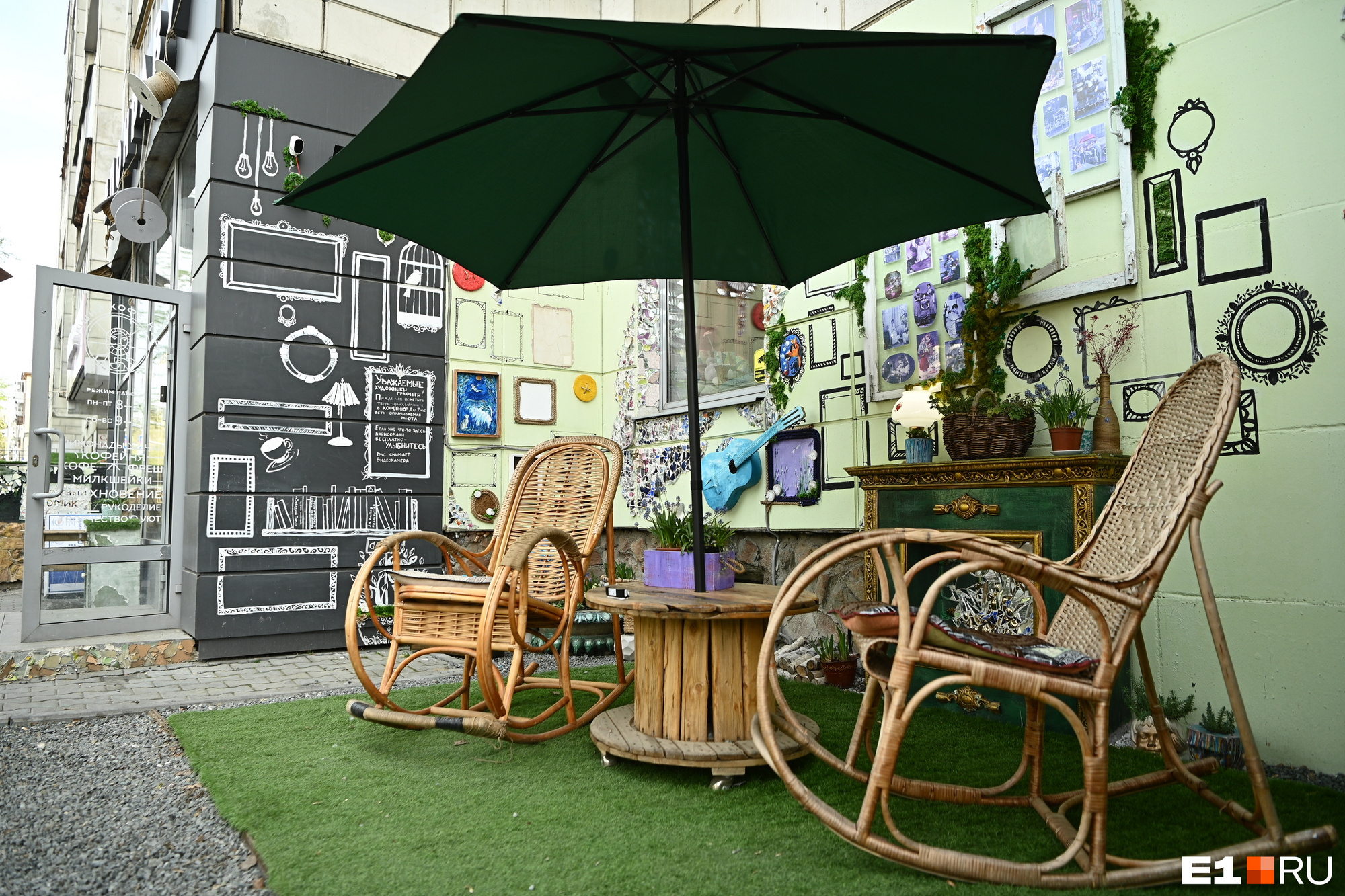 Еще год назад уголок на Карла Маркса, 36 выглядел грустно: мусор, реклама наркотиков и пивные бутылки. Любовь Новоселова, владелица мастерской «Лоскутный домик», которая находится рядом, и ее сын Владимир преобразили эту территорию до неузнаваемости: картины, кресла-качалки и даже настоящий камин.
