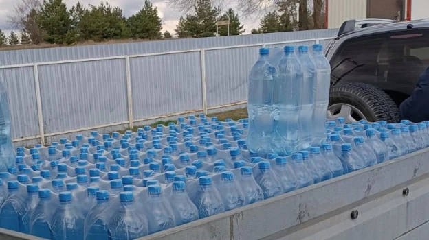 Вместе с первой партией воды волонтеры также передали 12 пятилитровых бутылок, в которые положили сухарики.