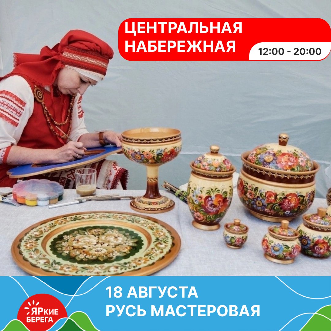 Уже сегодня на Центральной набережной пройдёт Всероссийский конкурс народных мастеров «Русь мастеровая». Кроме того, запланированы мастер-классы, выступления коллективов, интерактивные площадки и многое другое.