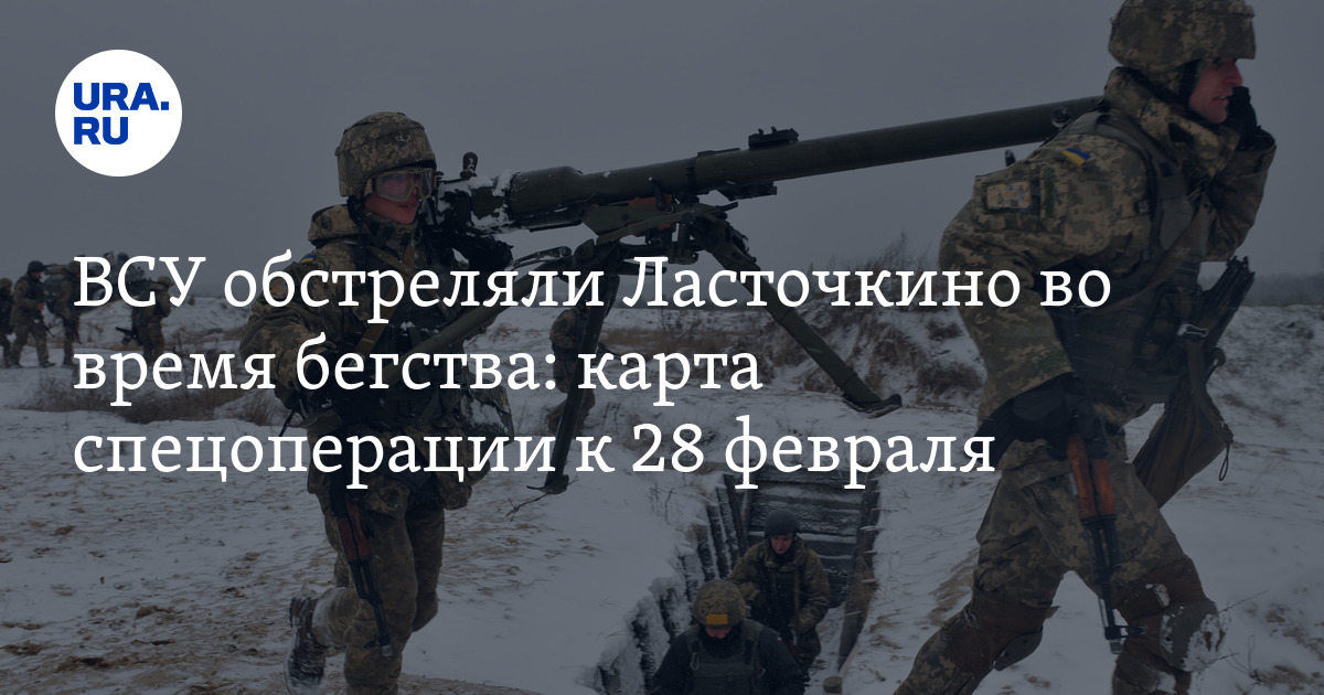 ВСУ во время отступления из поселка Ласточкино (авдеевское направление) обстреливали населенный пункт из минометов и кассетных боеприпасов. В Минобороны РФ показали, как украинские солдаты бежали со своих позиций во время штурма ВС России. Ход военных действий и интерактивная карта спецоперации России на Украине к 28 февраля — в материале URA.RU.