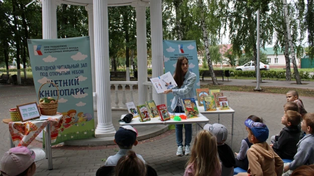 Проект «Летний книгопарк» – это выездной читальный зал под открытым небом. На реализацию данного проекта в 2023 году детская библиотека получила 216,5 тыс. рублей в грантовом конкурсе Президентского фонда культурных инициатив. На эти средства закупили раскладные столы и стулья, настольные игры, мини-кинотеатр и беспроводную акустическую систему.
