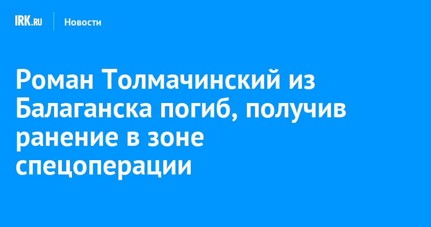 Житель Балаганска Роман Толмачинский скончался после получения тяжелого ранения в зоне проведения специальной военной операции. Мужчина остался инвалидом, сообщили в соцсетях администрации Балаганского района.