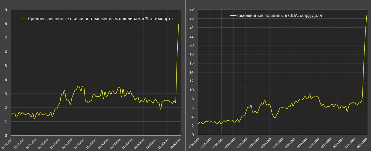 Эти 260-300 млрд платят американские контрагенты – чистый налог на экономику, но пока нет понимания о траектории распределения издержек по экономике. Однако, уже понятно, что пошлины пока НЕ повлияли на объем импорта из-за высокой платежеспособности американских контрагентов.