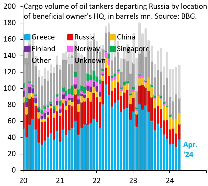 Главный экономист IIF Робин Брукс заявил, что нет никаких признаков того, что удары по российской энергетической инфраструктуре наносят ущерб способности России экспортировать нефть. Нападения на НПЗ означают, что Россия экспортирует больше сырой нефти с помощью теневого флота и получает большую непредвиденную прибыль. @banksta