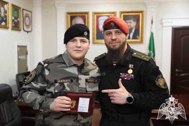 Начальник отдела обеспечения безопасности главы Чечни, в свою очередь, наградил сотрудников ОМОН "Ахмат-Грозный" медалями "Герой Чеченской Республики. Къонах".