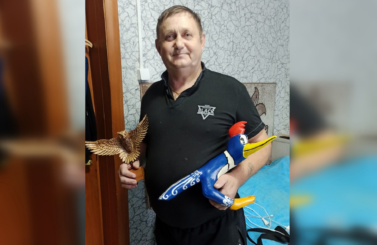 «В 2019 году я перенёс операцию, сильно нагружать организм было нельзя, а без дела я сидеть не могу, – рассказывает Владимир Николаевич. – Вспомнил, что у меня давно лежит подарок – небольшой набор для резьбы по дереву. Я и занялся: сначала вырезал ложечки, потом стал делать небольшие фигурки. Понравилось, стало получаться, сейчас я уже и дня не могу прожить, чтобы не заняться резьбой».
