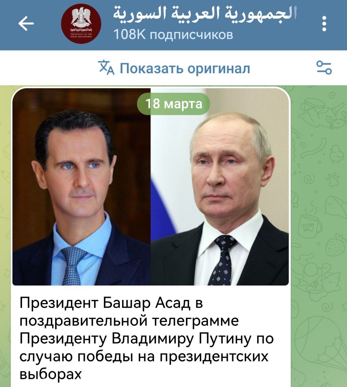 Асад поздравил Путина.