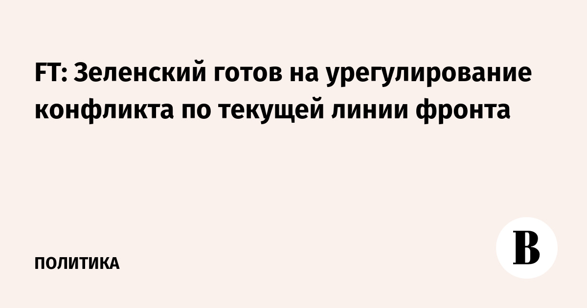 Президент Украины Владимир Зеленский может согласиться с уступками для завершения конфликта с РФ и урегулировать его по текущей линии фронта, чтобы не выводить войска из Донбасса, сообщила газета Financial Times со ссылкой на высокопоставленного украинского чиновника.