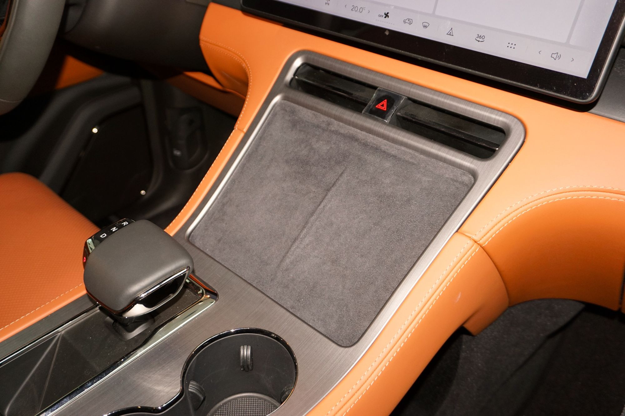 Ручка открывания двери, судя по холодку в руке, металлическая. Центральная консоль неожиданно напрочь лишена кнопок – за единственным исключением в виде «аварийки». Здесь только небольшой селектор, пара подстаканников и две беспроводных зарядки. Дефлекторы вентиляции регулируются через меню центрального дисплея – это 15,7-дюймовый тачскрин на мощном чипе Qualcomm Snapdragon 8155. Меню полностью русифицировано и при беглом взгляде лишено ляпов перевода с китайского.