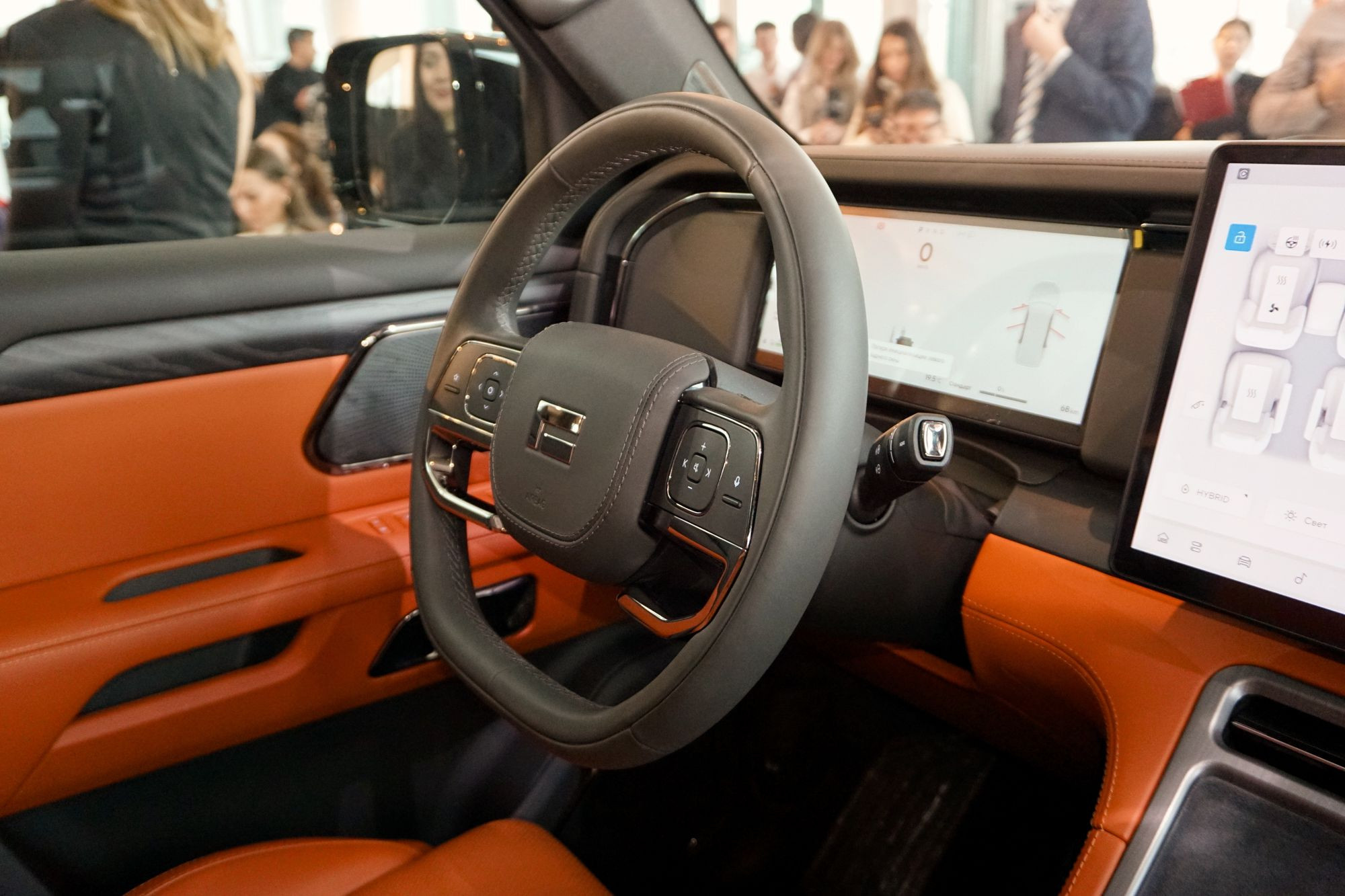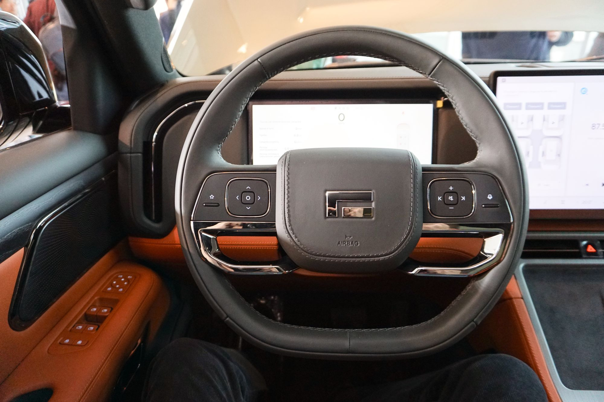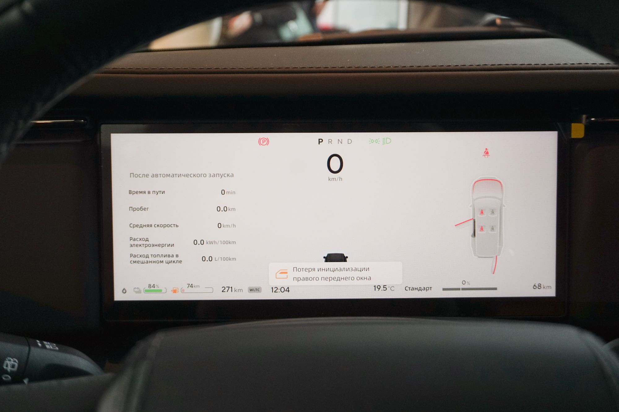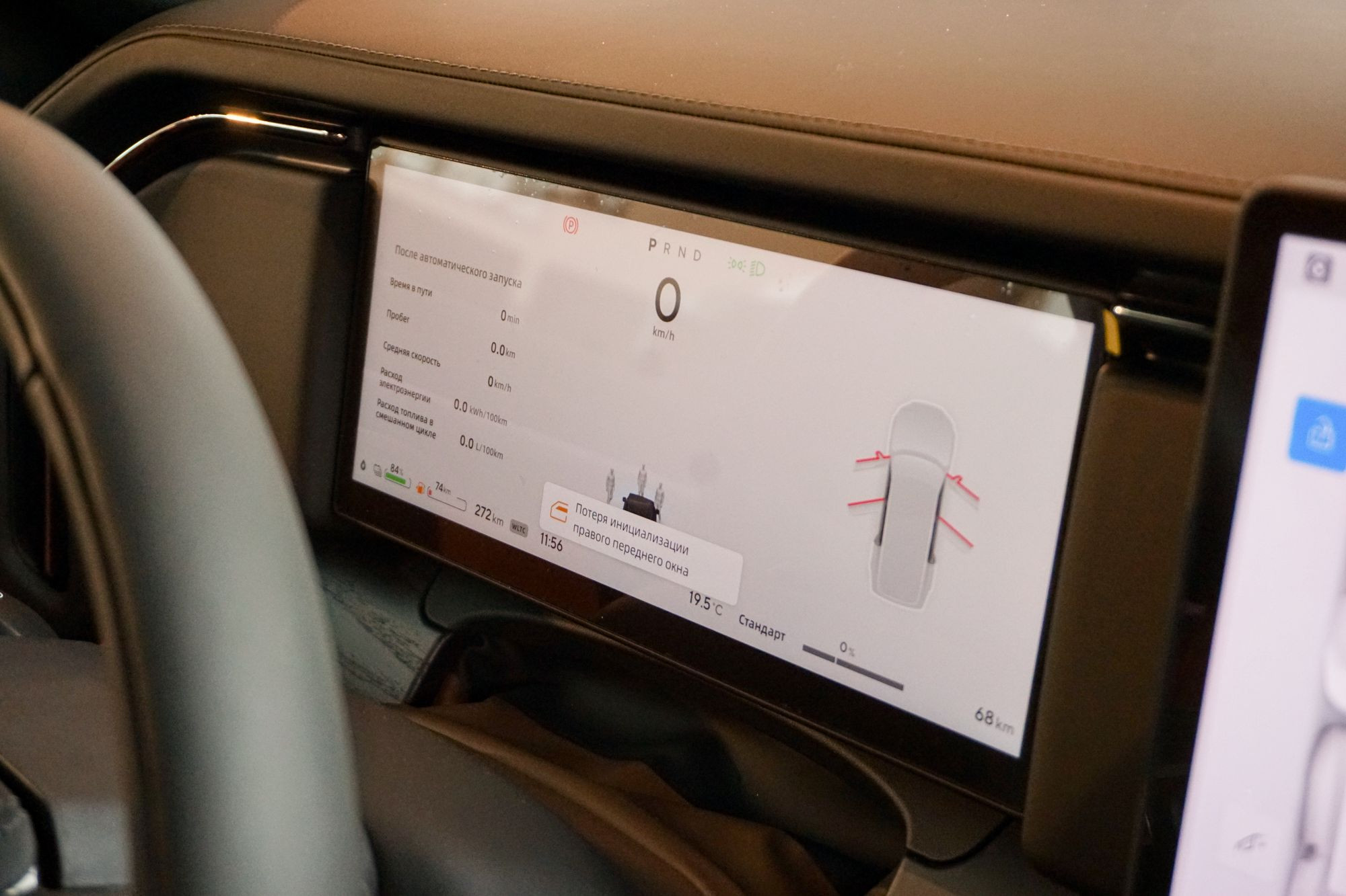 Выдвижная подножка и водительское кресло живо напоминают Range Rover – здесь высокая «капитанская» посадка и похвальные диапазоны регулировок. Сиденья обиты тактильно приятной наппой и снабжены мягкими замшевыми подушечками для затылка. Приятно, хоть всё это мы уже видели на Lixiang и не только. Качество материалов весьма неплохое, смутила только неряшливая строчка на D-образном рулевом колесе и пластик кнопок на спицах руля – похоже, что он мигом покроется микроцарапинами.