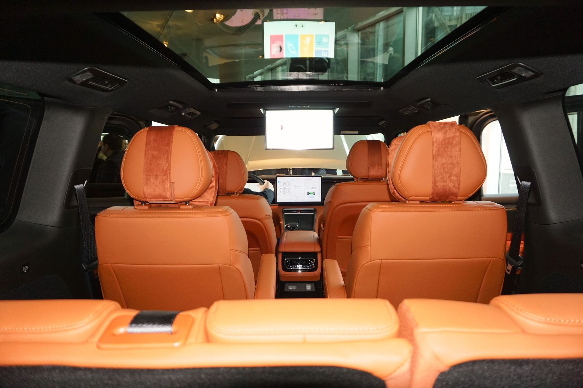 В салоне лендроверовский вайб усиливается многократно – начиная с плоских дверей с широким подлокотником и заканчивая общей архитектурой передней панели. Rox 01 предлагает на выбор два варианта компоновки. В любом случае это три ряда кресел, но посадочная формула может быть либо 2+2+2 – с раздельными креслами второго ряда (такая версия называется Business lounge edition), либо 2+3+2 – с трёхместным диваном (Family edition).