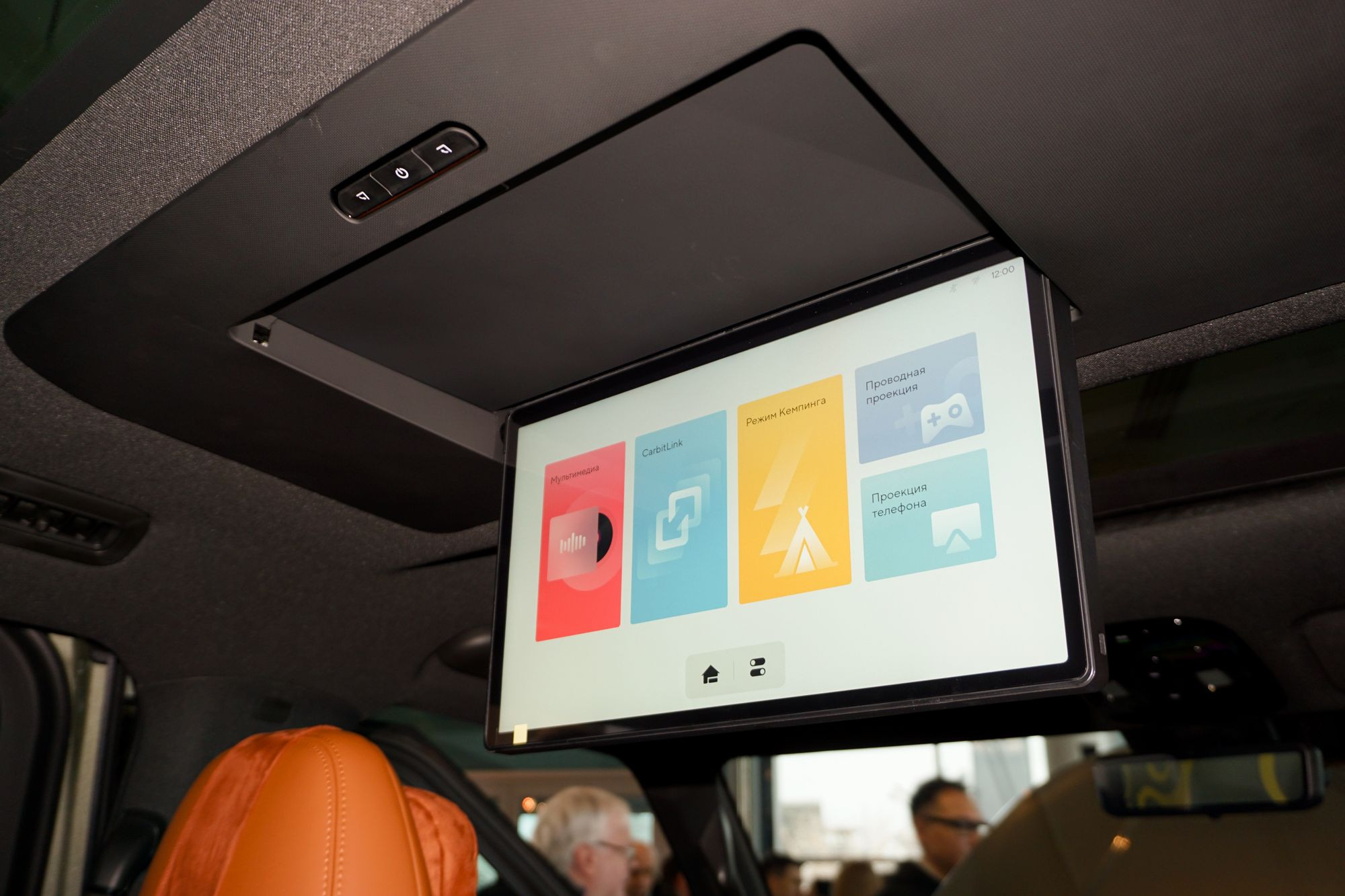 Приборная панель – 12,3-дюймовый экран, а в потолке перед вторым рядом прячется 15,6-дюймовый дисплей, к которому можно подключить игровую консоль. Вообще, на втором ряду – простор! По крайней мере – в 6-местной версии. Регулировки позволяют подобрать удобную позу, есть откидные подлокотники и собственная зона климата. Кресла тоже снабжены электрорегулировками. Ну а на третьем ряду ожидаемо тесновато – низкая посадка вынуждает сидеть с задранными коленками, и сиденья откровенно плоские, хотя детям тут будет не так уж и плохо.