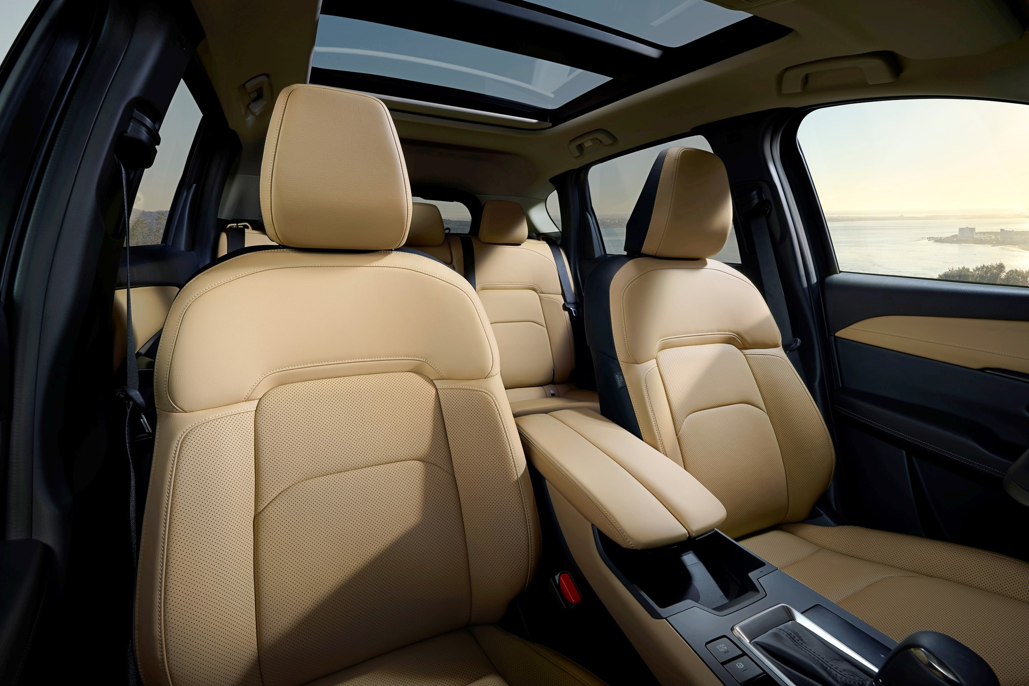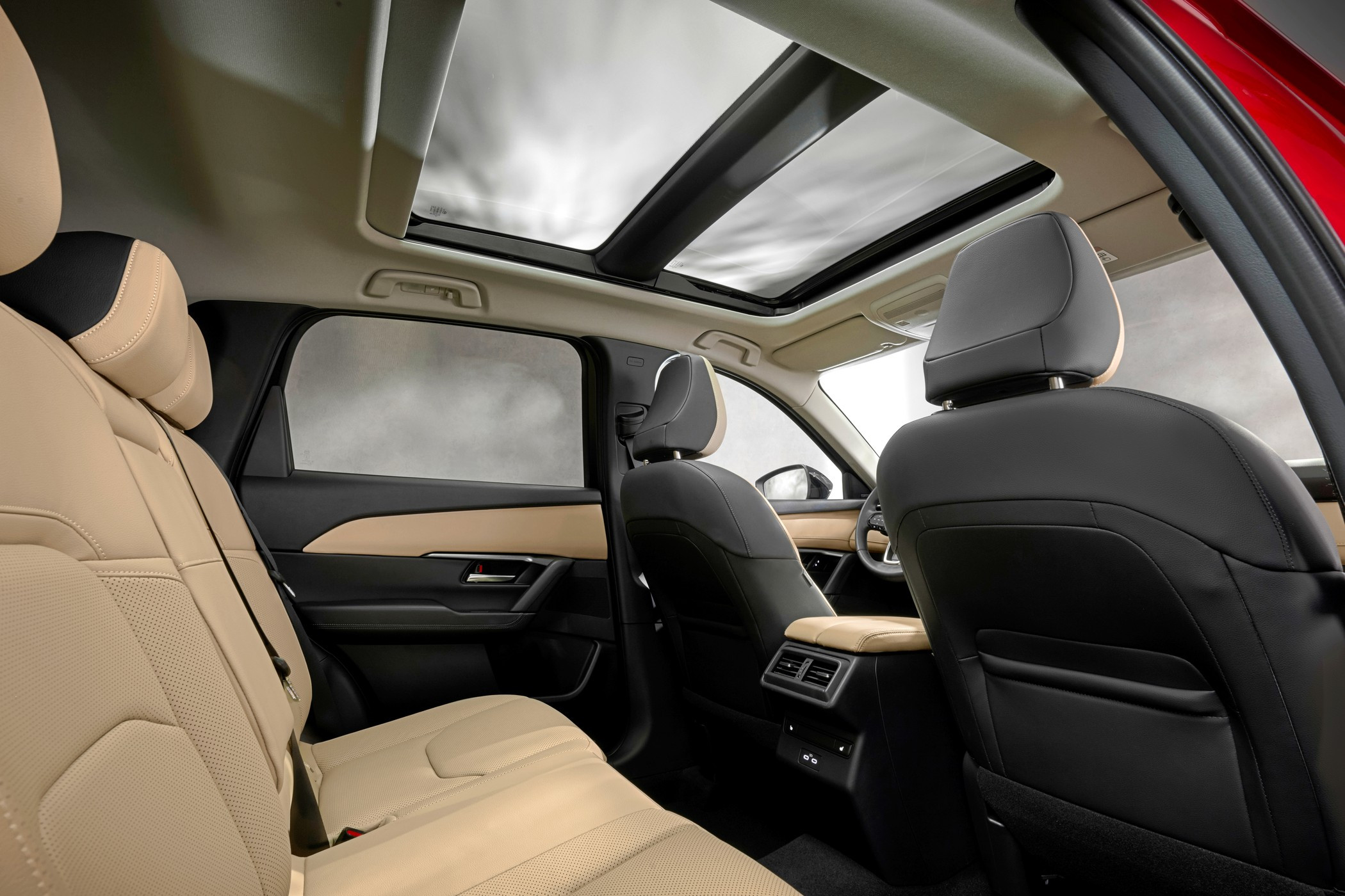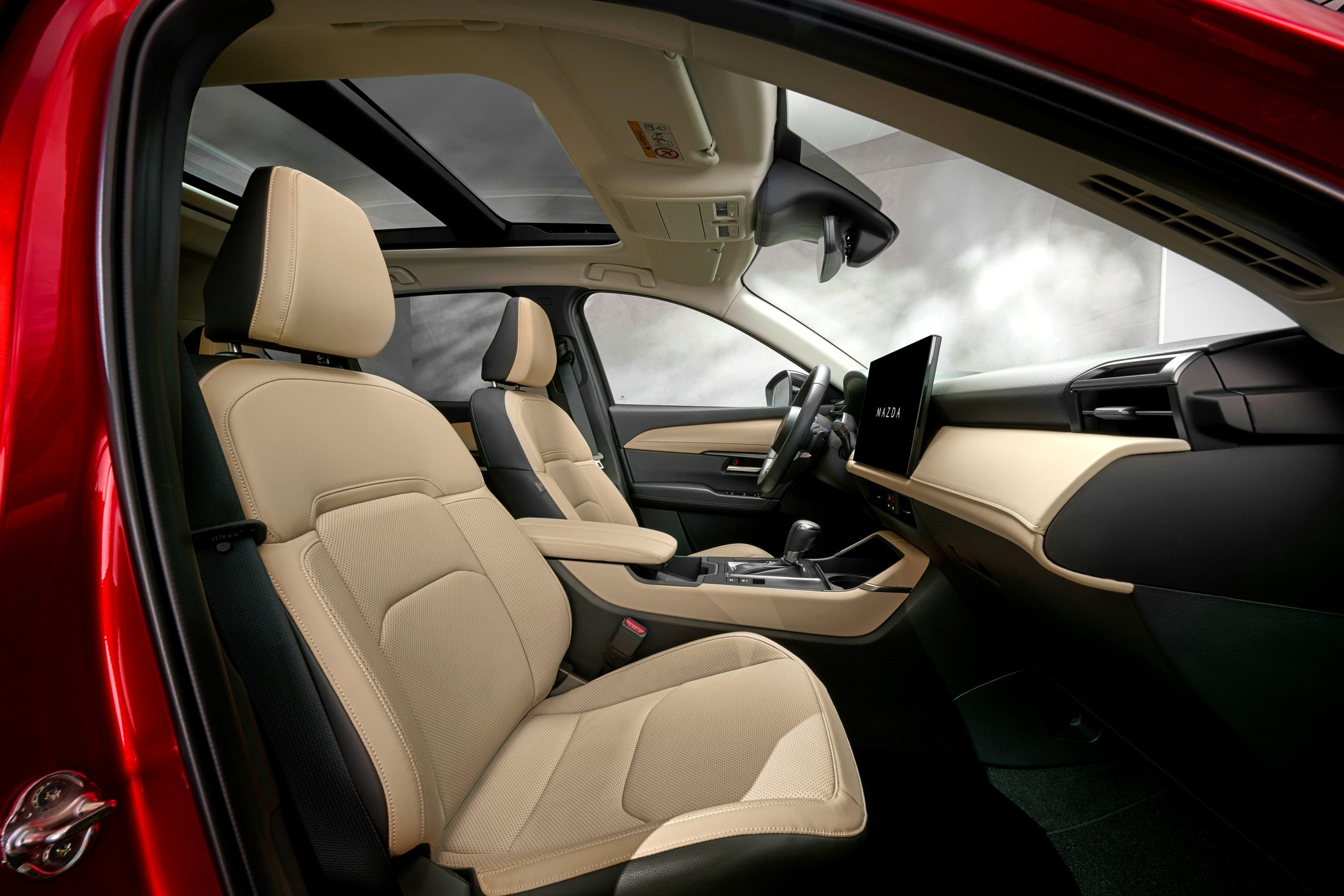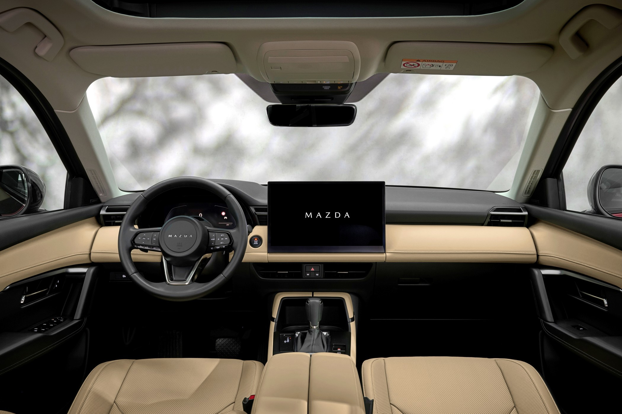 Наиболее драматические изменения у Mazda CX-5 произошли в салоне, от фирменного стиля Mazda здесь мало что осталось, теперь салон CX-5 напоминает салон китайской Mazda 6e, которую выпускает Changan. На передней панели практически не осталось физических клавиш, все климатические настройки уехали в «парящий» мультимедийный планшет с диагональю 12,9 либо 15,6 дюйма. Щиток приборов теперь тоже полностью нарисованный, 10,25-дюймовый. На центральном тоннеле между тем остался классический фиксируемый селектор АКП в кожаном чехле, а вот ротационно-нажимная шайба управления мультимедийным экраном с центрального тоннеля исчезла — якобы она плохо вписывается в новую цифровую оболочку. Топовая аудиосистема Bose насчитывает 12 динамиков. Во втором ряду стало просторнее. Объём багажника увеличился на 61 л до 583 л, а при сложенных спинках заднего дивана владельцу доступны 2019 л грузового пространства (+381 л по сравнению с предшественником).