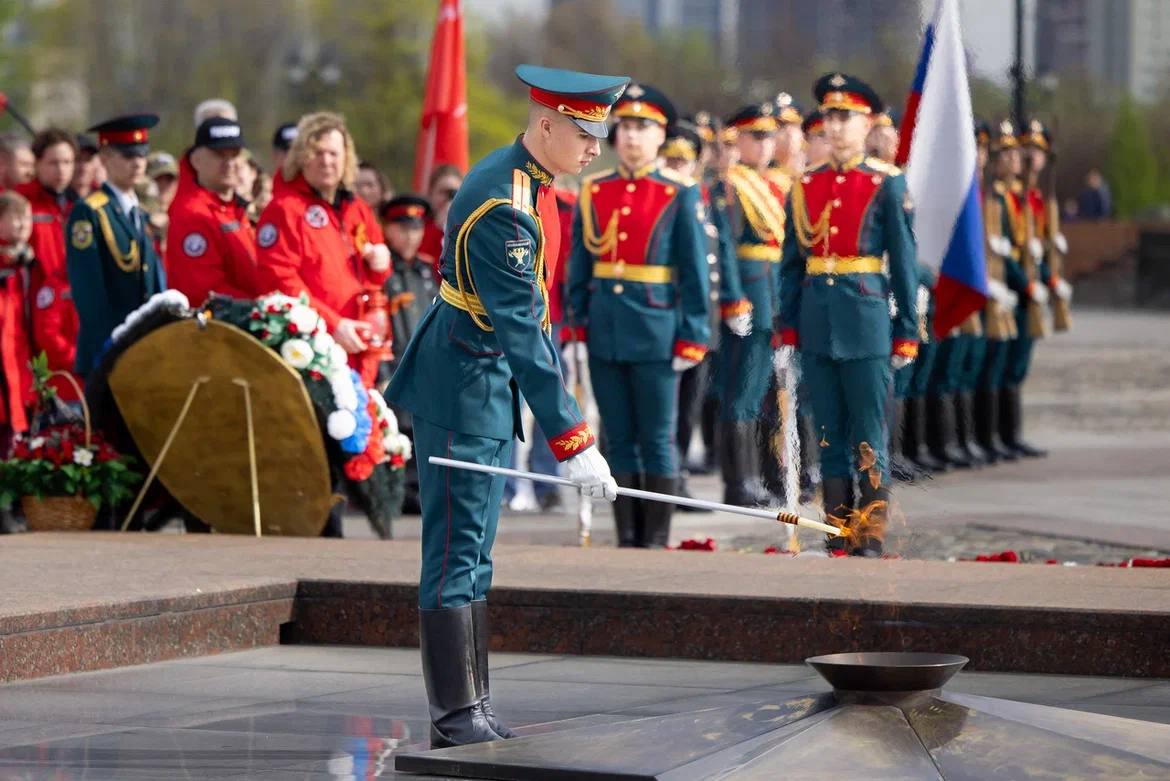 Состоялась торжественная церемония, в ходе которой участники акции взяли частицу Вечного огня у Музея Победы. 🕯️