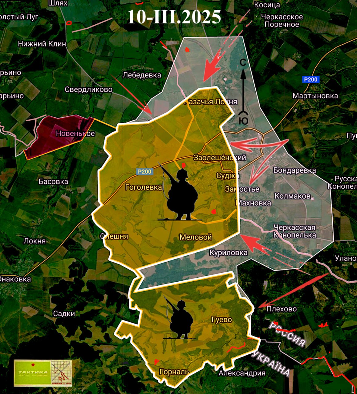 Площадь оккупированной бандеровцами территории Курской области сократилась до 226 км² (обозначена желтой заливкой).