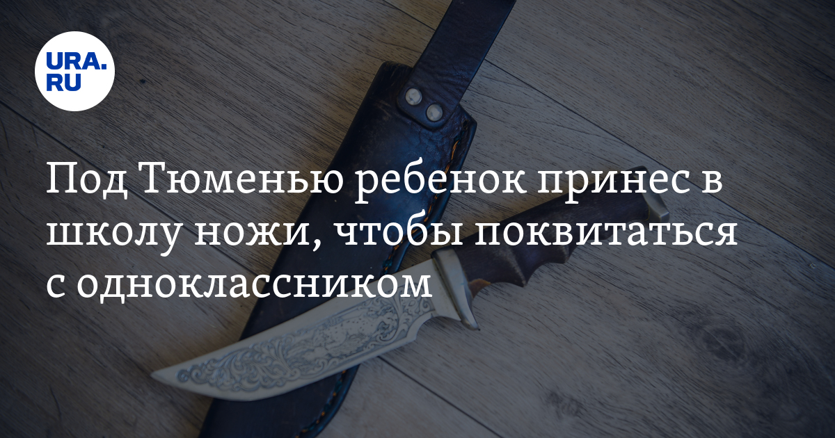 В селе Луговое (Тюменский район Тюменской области) третьеклассник принес в школу охотничьи ножи, чтобы поквитаться с другим ребенком. Об этом URA.RU сообщили родители учащихся. Они написали заявление в прокуратуру и просят обеспечить их детям безопасность.