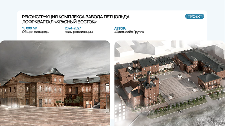 Пожалуй, самым грандиозный объект — комплекс пивоваренного завода Александрова-Петцольда семьи бизнесменов Хайруллиных. Владельцы вкладывают в реконструкция 5 млрд рублей. Проект получил название «Красный Восток» — в середине XX века завод под таким названием производил здесь соки и воды. Завод Петцольда — памятник регионального значения 1892 года постройки. Долгое время комплекс пустует — часть стен и крыш все еще отсутствует. Проект владельцы начали готовить еще в 2008 году, а в 2016-м прошел первый этап восстановления. Площадь комплекса под новые функции — 15 тыс. кв. м, земельный участок — 1,2 гектара.