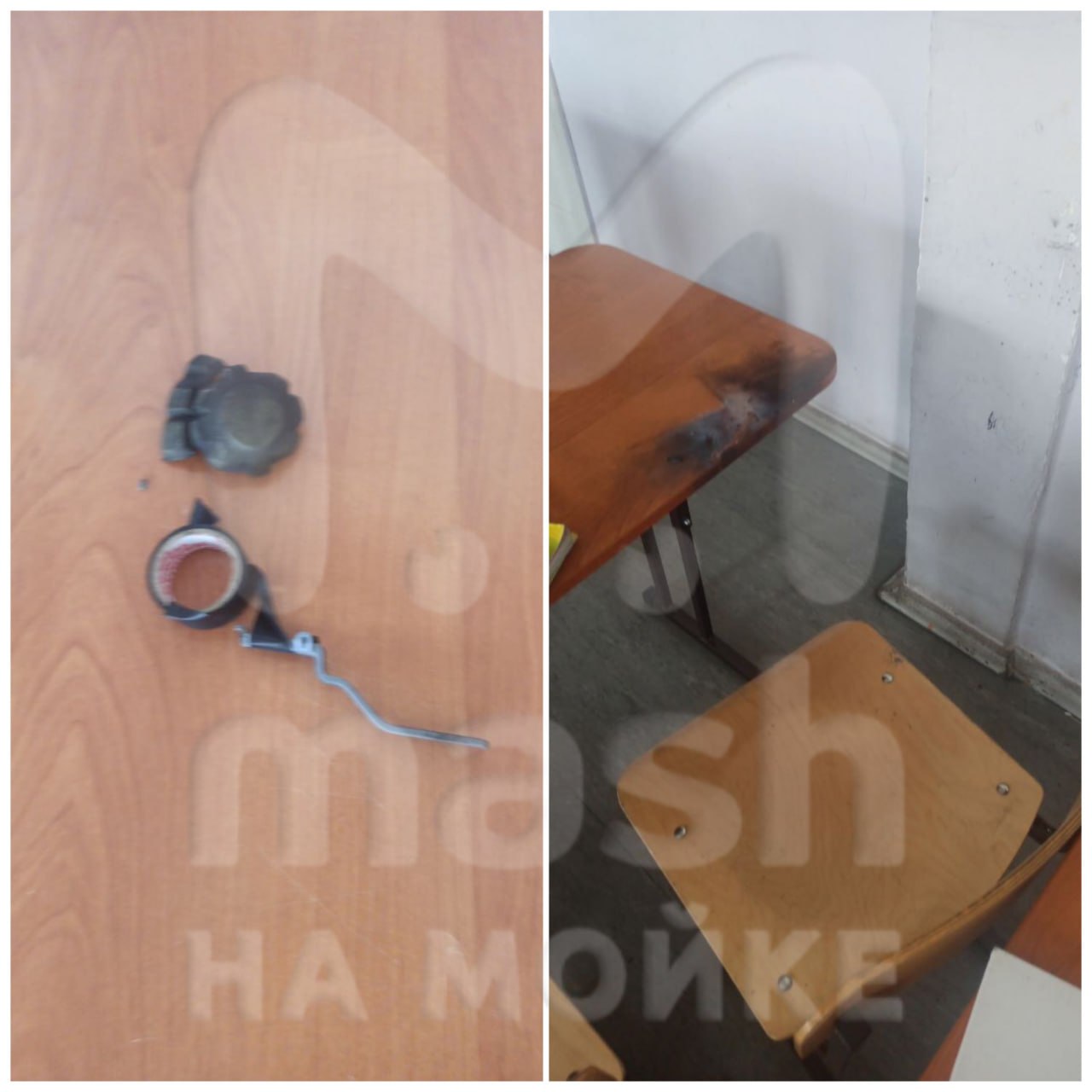 По нашей информации, мальчик купил страйкбольную "лимонку" в магазине и принёс её в школу сорвать контрошу показать друзьям. Бомбочка рванула внутри портфеля — на столе остался след от гари.