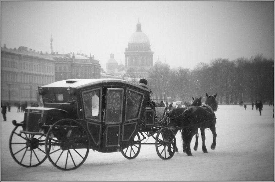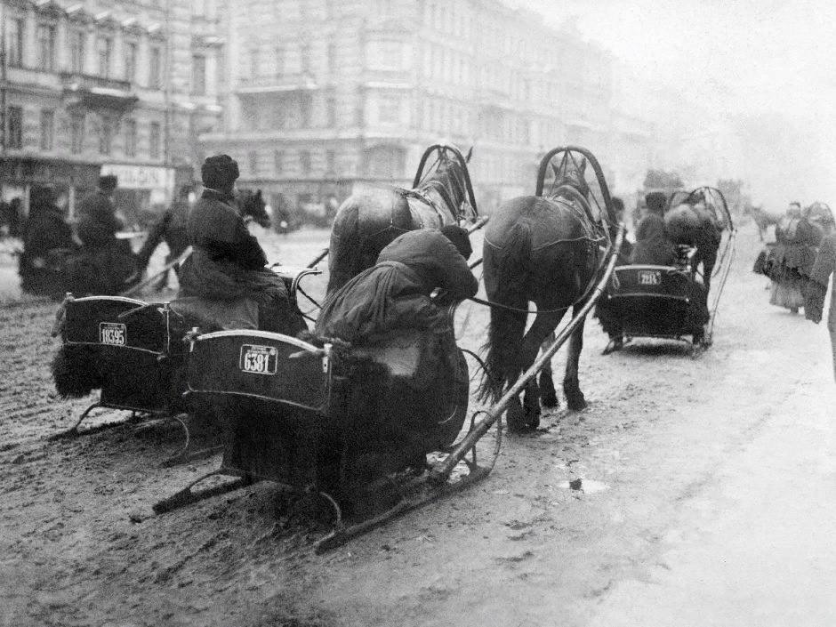 Конные сани на Невском проспекте1904-й г. Примечательное, что все "легальные" сани имели номера