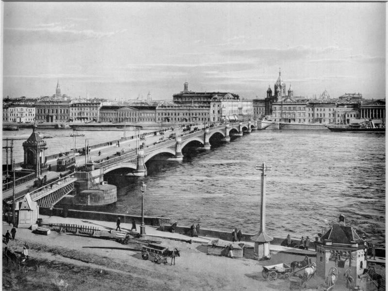 Николаевский мост, СПб, 1912 год. В 1918-2007 годах – мост Лейтенанта Шмидта. В 2007 году возвращено название Благовещенский.