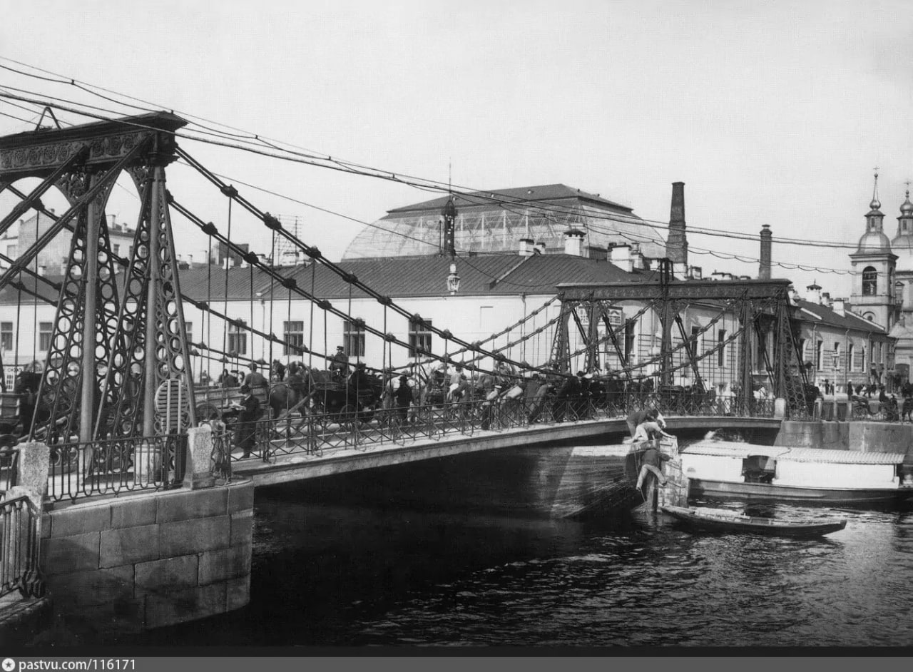 Мост был разобран в 1906-м году. Теперь здесь - Пантелеймоновский мост.