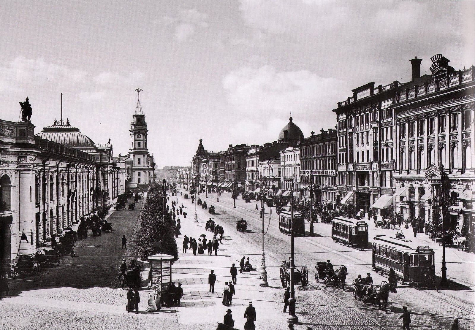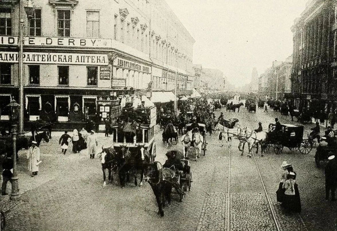Невский проспект в 1901 году. Транспорта всё так же много.