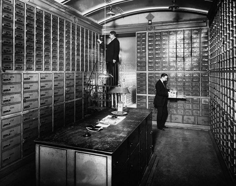 В помещении безопасных ящиков Волжско-Камского комм банка. СПб. Июнь 1911 г. Фотоателье Карла Буллы.
