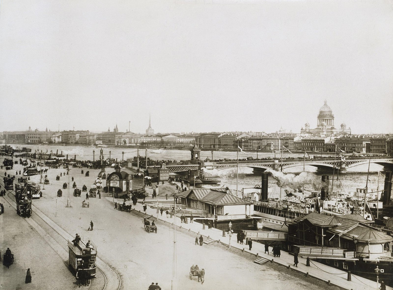 Николаевская набережная у Благовещенского моста. Санкт-Петербург. 1900-е. К.Булла