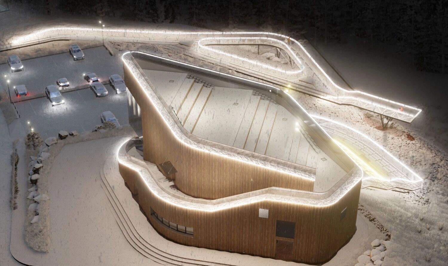 В соцсетях мастерской отметили, что проект здания стал продолжением ландшафта местности. В основе образа визит-центра лежит форма спирали, а в качестве основного фасадного материала выбрали фактуру дерева.