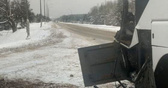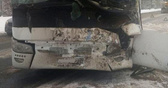 Рейсовый автобус с пассажирами попал в аварию со снегоуборочной техникой на федеральной трассе «Кола» в Кировском районе Ленобласти. От удара ему сильно повредило переднюю часть.