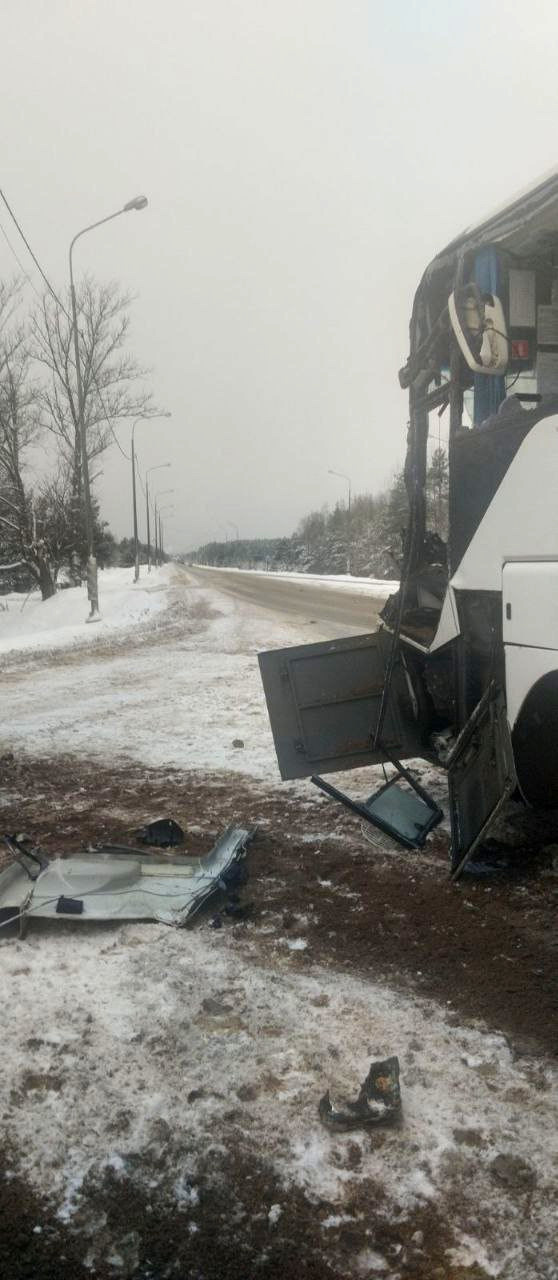 Междугородный автобус врезался в снегоуборочную машину на трассе «Кола» в Синявино