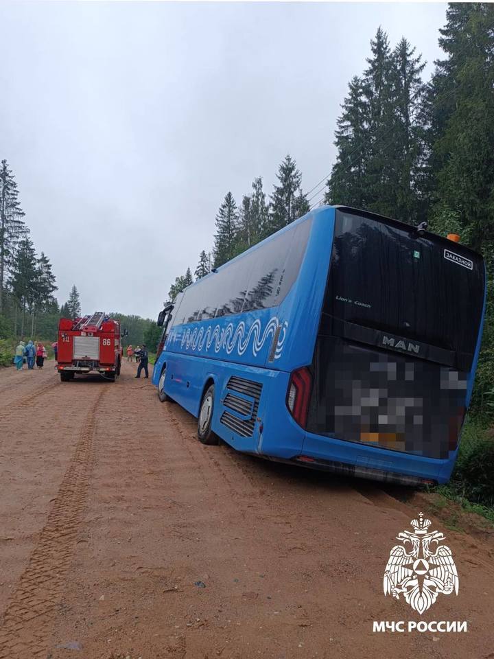 В Тверской области пожарные вытащили пассажирский автобус из кювета