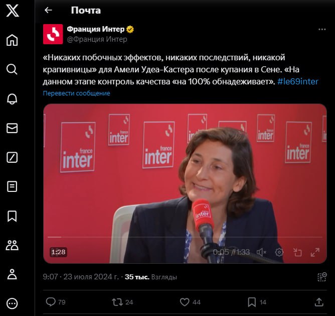 🔺Мэр Парижа вслед за министром спорта решила испытать удачу и искупаться в Сене, о состоянии её здоровья, да и в целом, жива ли она, ничего не слышно