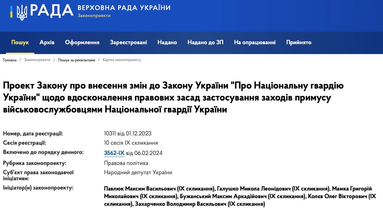 Нацгвардия сможет применять средства принудительной остановки автомобиля, наручники и электрошокеры, — сайт Верховной Рады