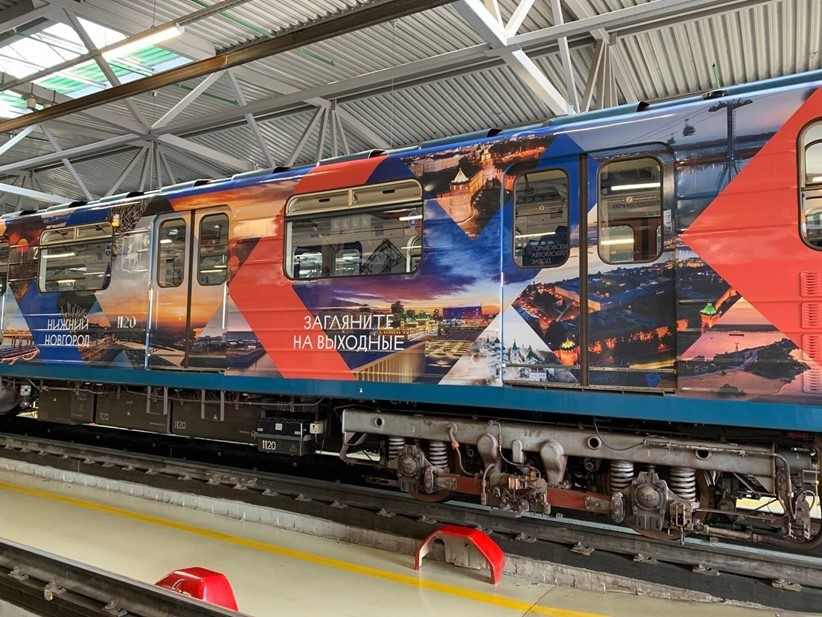 Следующие полгода на Московско-Петроградской (синей) линии петербургского метрополитена будет курсировать тематический поезд "Нижний Новгород: 100% настоящая Россия".