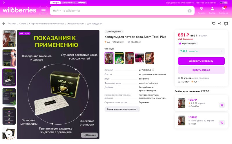 На Wildberries и Ozon вновь появились опасные препараты для похудения. Их уже запрещали, но производители сменили название и продают по новой. Ранее они продавались под брендом "Молекула", а теперь их переименовали в "Атом".