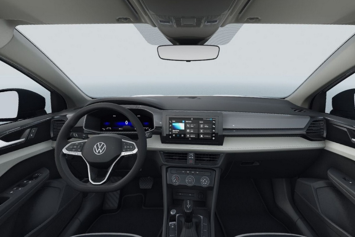В салоне – новая передняя панель. Уже в базе VW Taos для Мексики имеет мультимедийную систему с 10-дюймовым планшетом, хотя в США у кроссовера 8-дюймовый экран. В списке оборудования самой дешевой мексиканской пятидверки еще заявлены цифровая приборка, тканевая обивка, климатическая установка с управлением тремя шайбами, камера заднего вида, адаптивный круиз-контроль, системы мониторинга «слепых» зон и слежения за разметкой. Топ-версия – это полноценная виртуальная приборка, комбинированная обивка (есть «кожа»), панорамный люк в крыше, двухзонный климат-контроль с сенсорным блоком управления и расширенный комплекс ассистентов водителя.