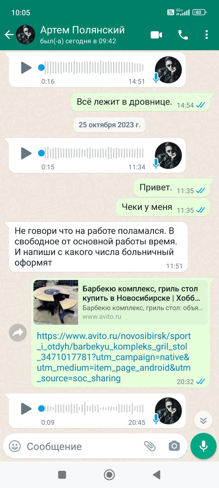 — Человек просто маленько невменяемый и «белочку» словил, можно так сказать. Я вам перешлю, что это чудо у нас учудило, — говорит Артем Полянский о Сергее Чащине. — Он пытается деньги получить, потому что он там переломался, соответственно, был пьяный. Тут теперь пытается мне всё устроить и увольняться еще не хочет.
