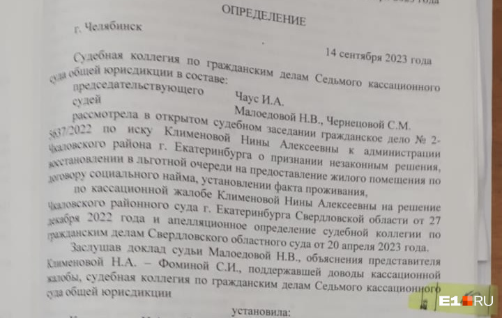 После публикации на E1.RU Областной суд отменил все решения о Нине Клименовой. Вскоре пенсионерку снова поставят в очередь на предоставление жилья.