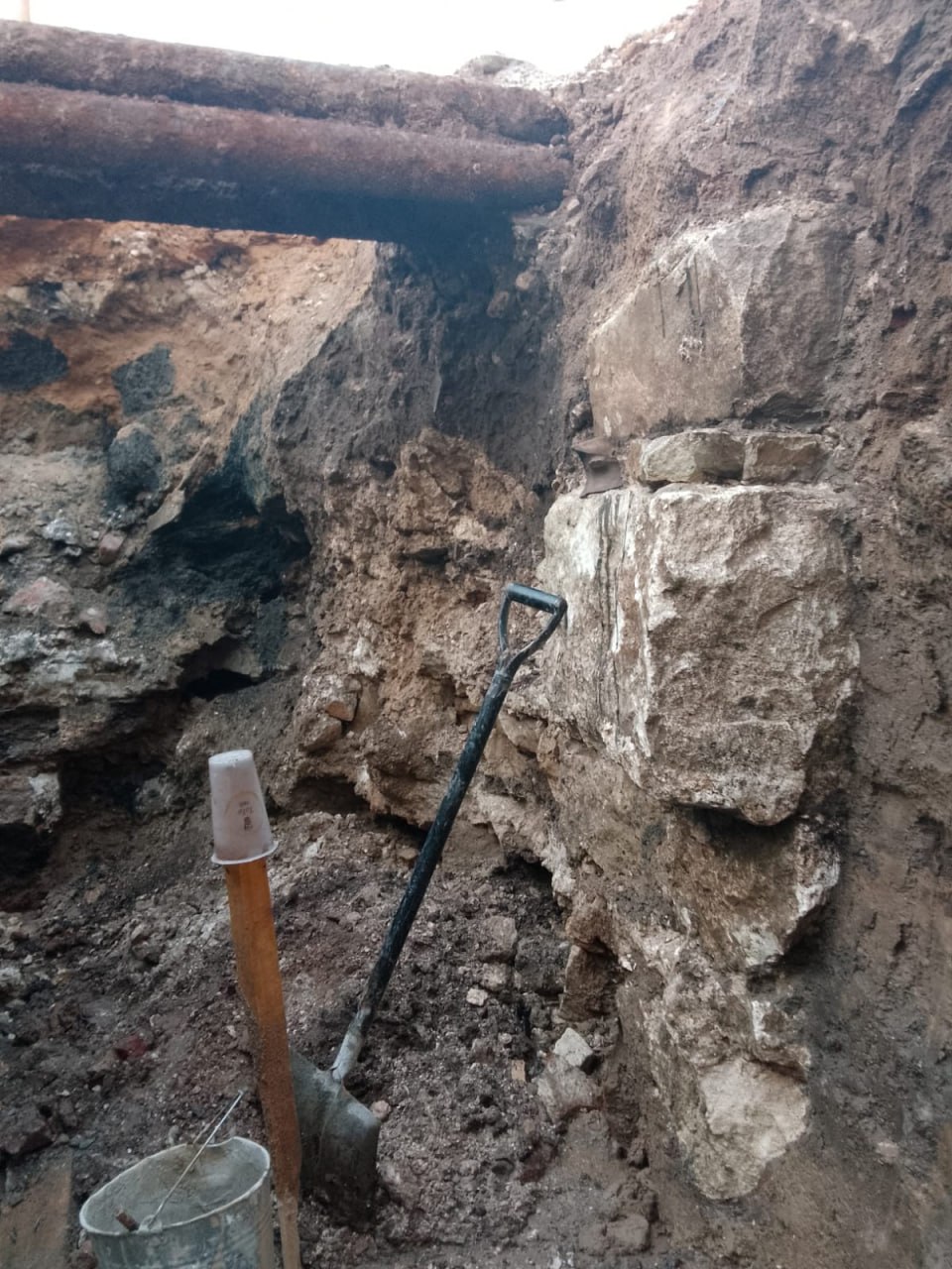 В той части, где на фотографиях видно очищенную кладку - это откопал и отмыл энтузиаст-любитель, проходивший мимо и обалдевший от видов разрушений. Представителей "официальной археологии" и Департамента культурного наследия Москвы ничего из этого не интересовало. По правилам, спасательные археологические раскопки должны предусматривать присутствие археолога на всех этапах работ и, как минимум, скрупулёзную фотофиксацию и составления чертежа обнаруживаемых в ходе работ сооружений.