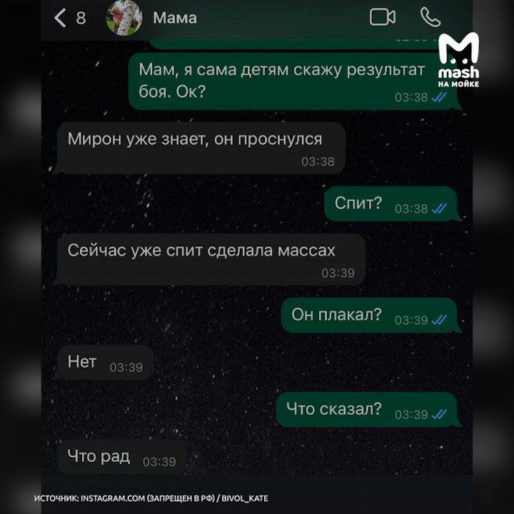После развода она раскрывала общественности подноготную и раскручивала собственные медиа, пытаясь задеть экс-супруга. Всё это время Дмитрий отмалчивался. Апогеем стали едкие комменты Кати во время последнего боя бывшего — она совсем не скрывала своих антисимпатий и разбрасывалась далеко не самыми приятными историями из совместной жизни с Биволом.