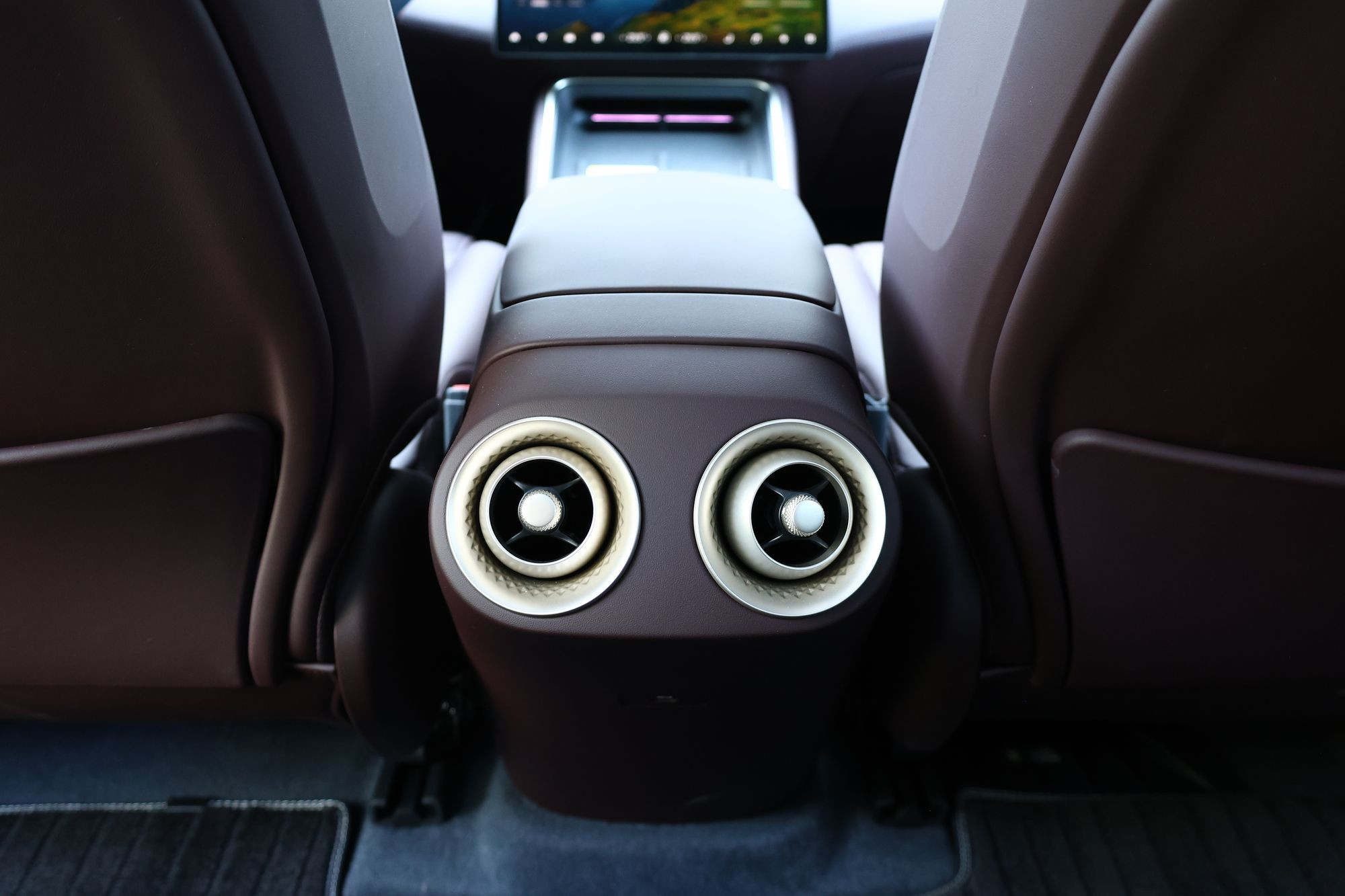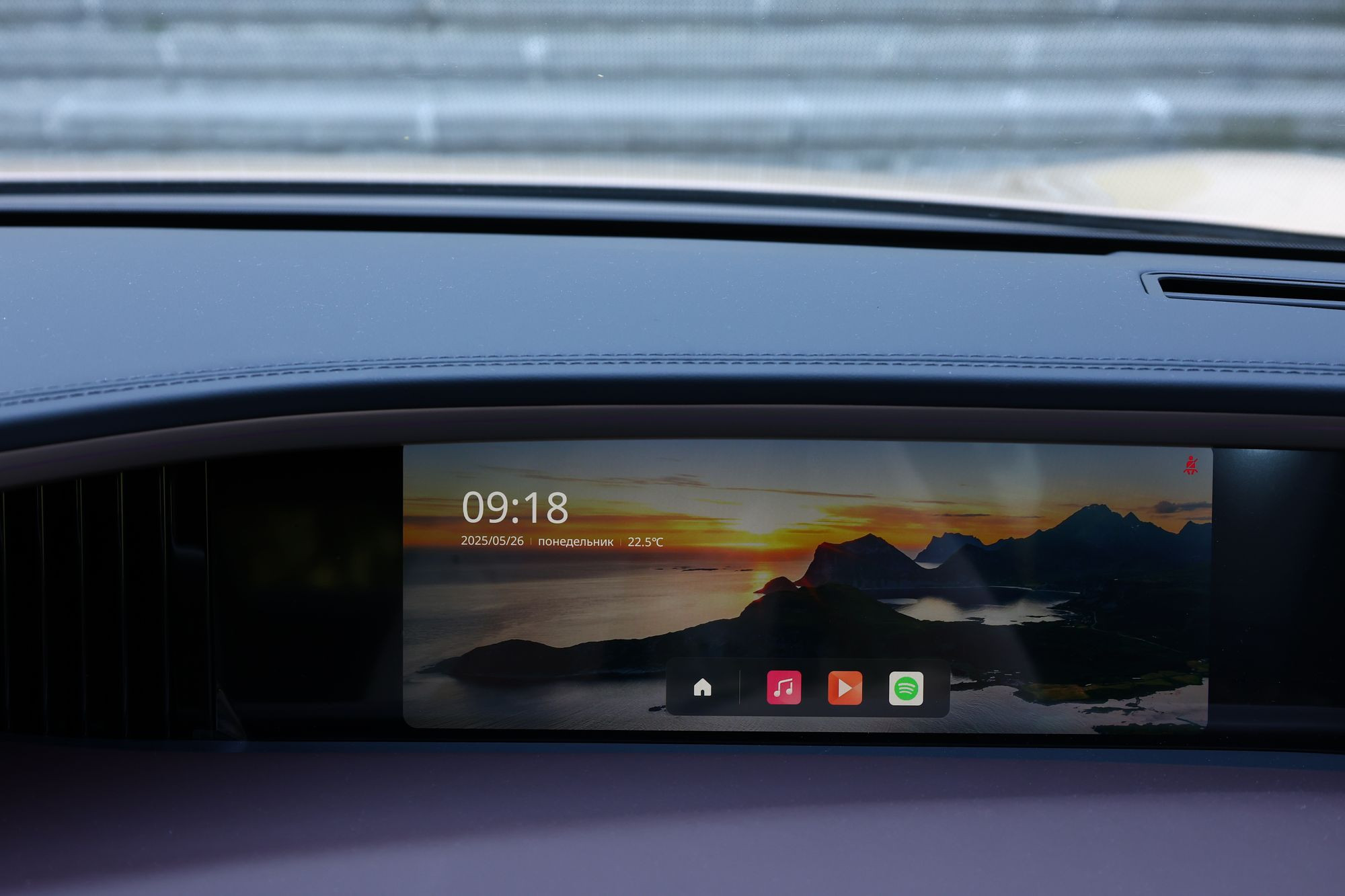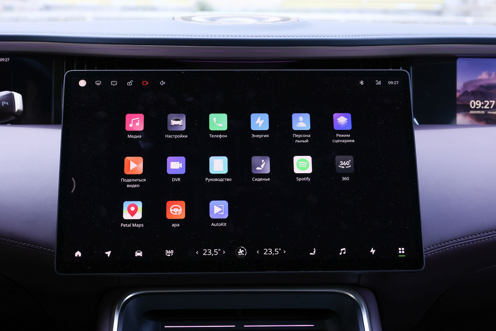 Да, можно вытянуть ноги. Но устроишься поудобнее и осматриваешься вокруг, а там – ничего. Нет ни дисплеев, ни пульта управления музыкой, ни даже собственной зоны климата. Только пара дефлекторов и беспроводная зарядка. Спереди – никаких кнопок, всё спрятано в 15,6-дюймовый тачскрин. Работает, он, кстати, отлично, здесь удобный интерфейс с возможностью добавлять и перемещать виджеты, есть голосовое управление, беспроводной Apple CarPlay, но привыкнуть к тому, что любая настройка требует скитаний по дебрям меню, сложно.