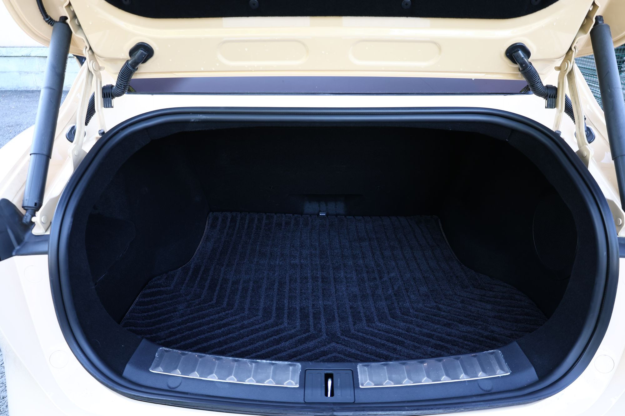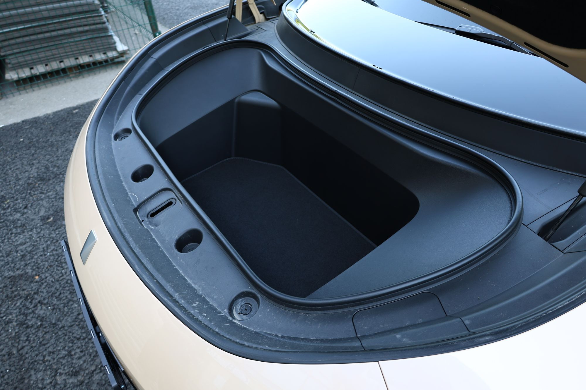 Крышка заднего багажника снабжена электроприводом, а вот передний нужно открывать и закрывать вручную. Второе довольно проблематично, поскольку пластиковую крышку нельзя просто захлопнуть – она слишком лёгкая. На неё нужно довольно сильно надавить руками точно посередине, ровно там, где находится замок. И после этого пойти мыть руки. Зато электроприводом не забыли снабдить ещё и выдвижное антикрыло. Парадокс.