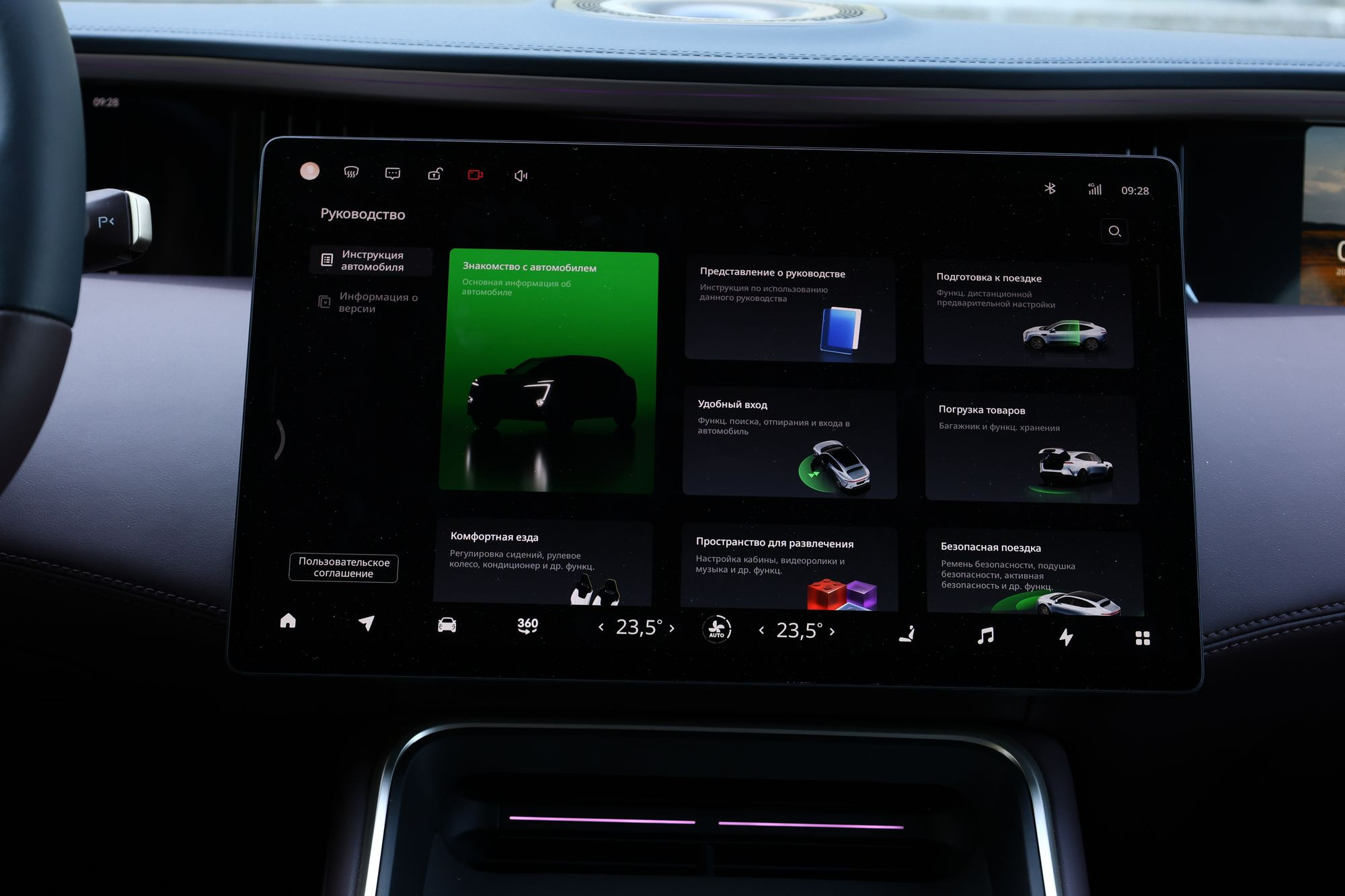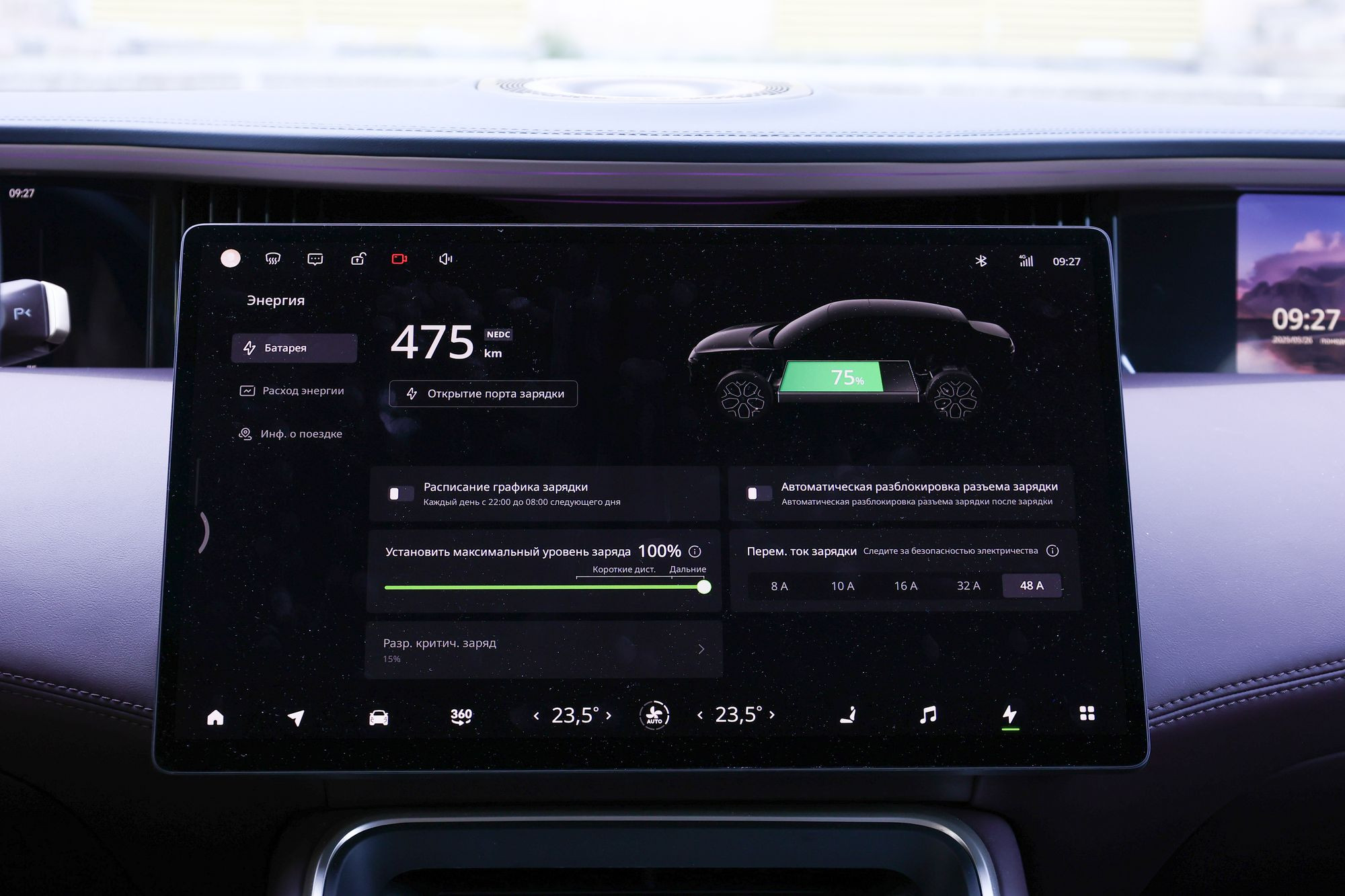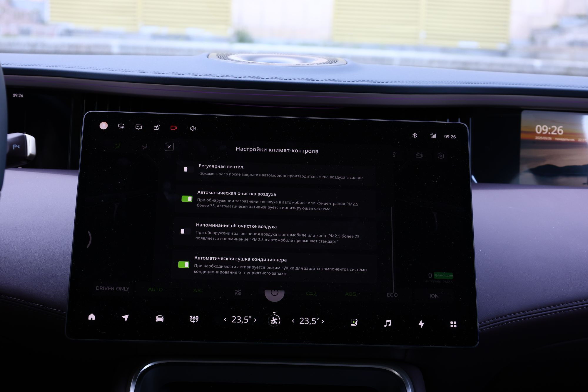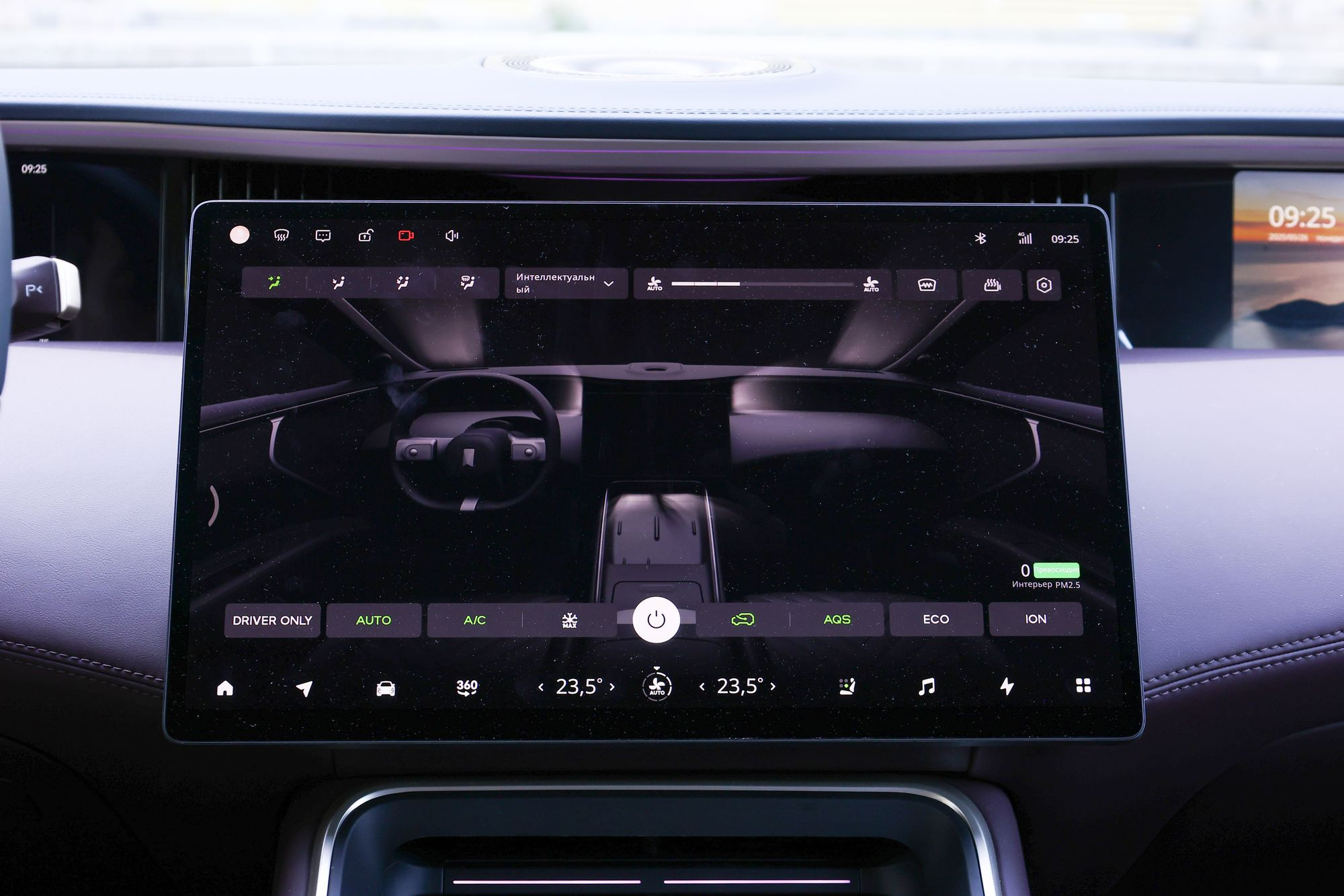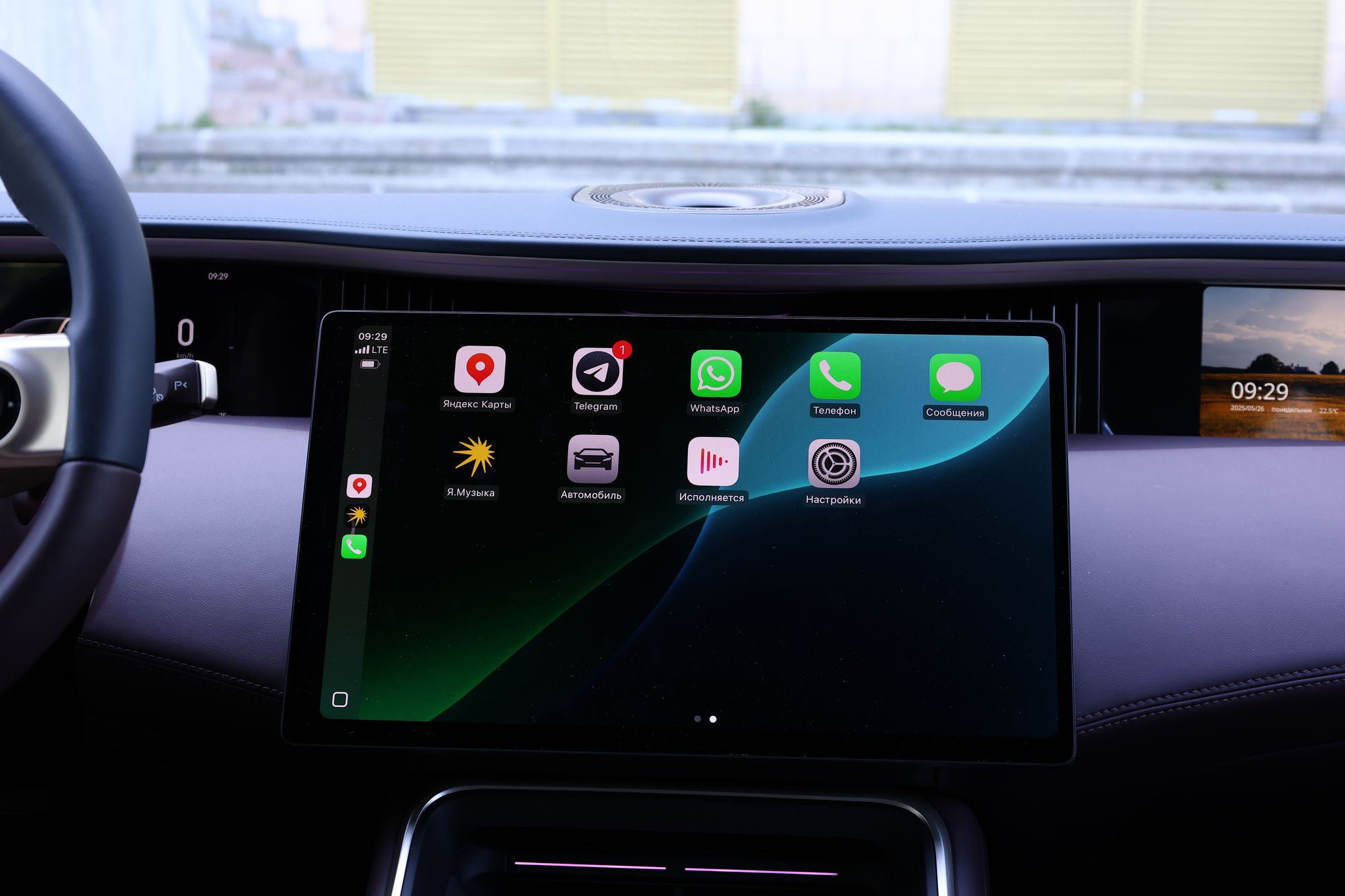 Седан для российского рынка отличается от китайской версии полной русификацией, сим-картой одного из отечественных операторов, подогревами ветрового стекла, кресел и руля, а также разъёмом зарядки формата CCS Combo 2 вместо GB/T. Ну и заглушками вместо лидаров и диодной панели, как было сказано выше.