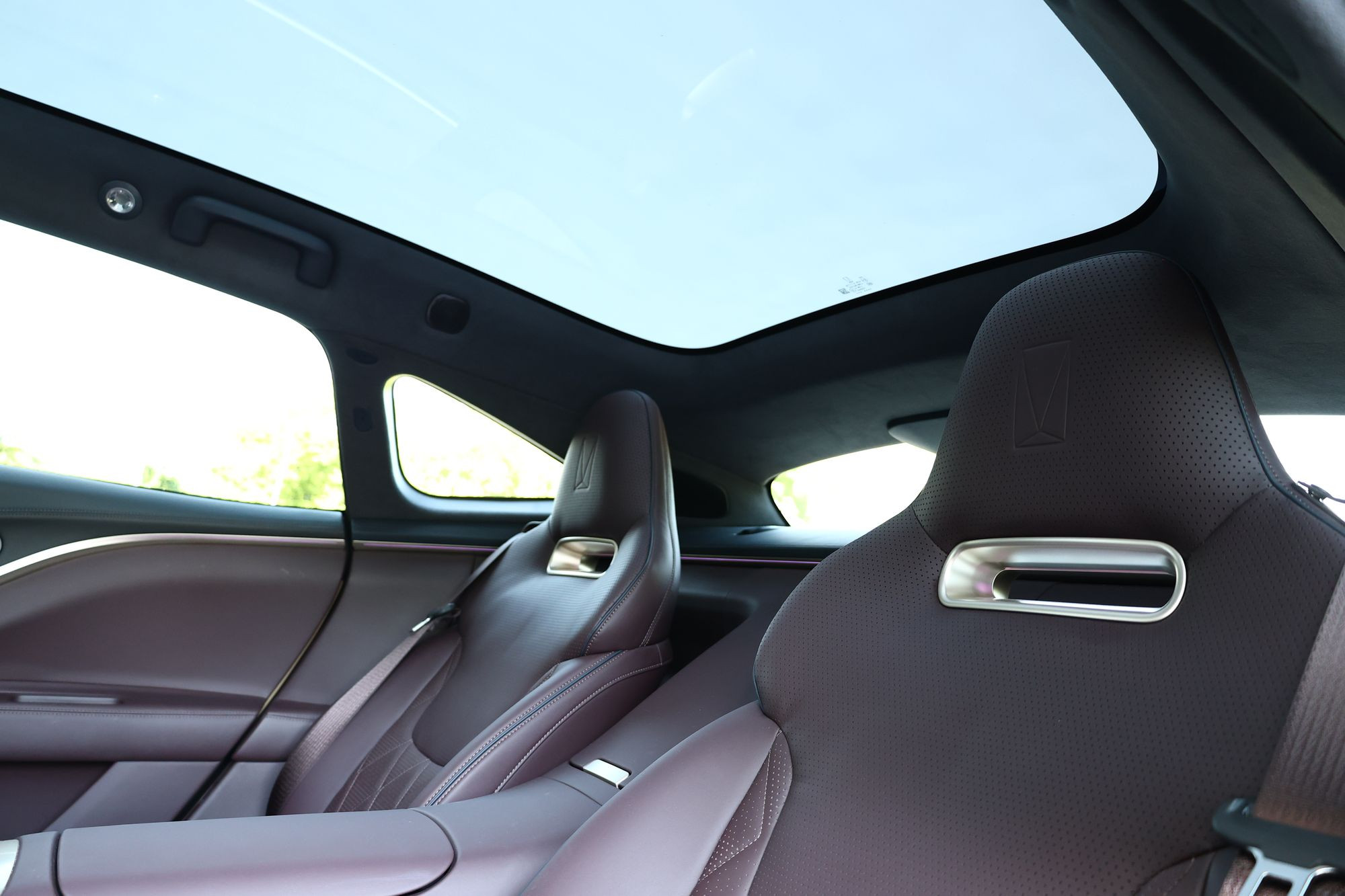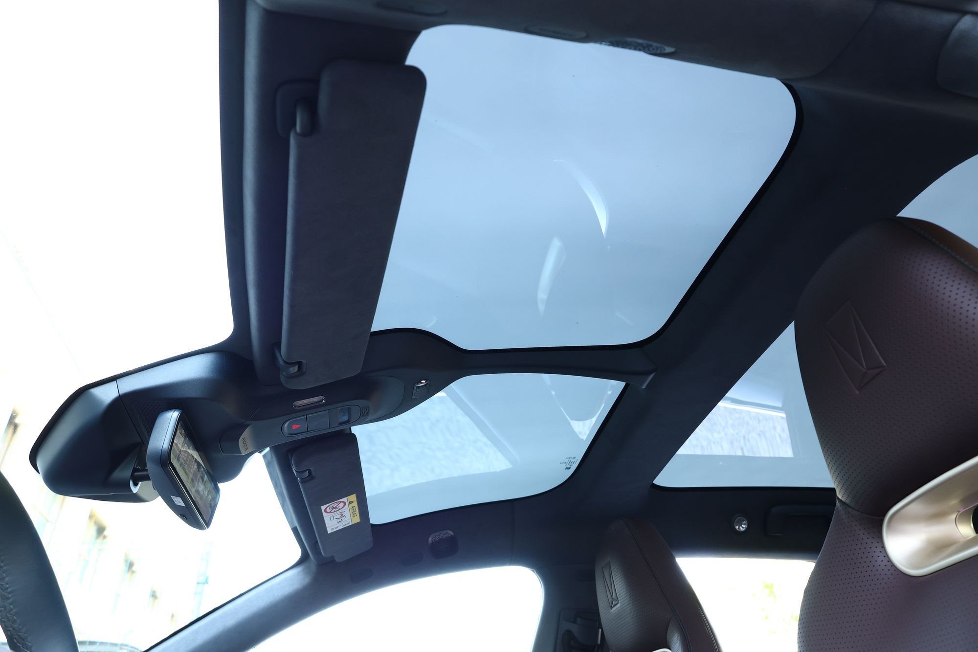 Но выбора, увы, нет: у полноприводных версий Avatr 11 приводы дверей включены в базовую комплектацию. А вот у заднеприводной модификации седана с уменьшенной батареей – обычные двери с доводчиками. Интерьер эпатирует Т-образной перемычкой на крыше – стёкол на крыше получается три штуки, но ни одно из них открыть нельзя. Дизайн салона полностью симметричен. Наверное, чтобы минимальными усилиями перекидывать руль в зависимости от рынка.